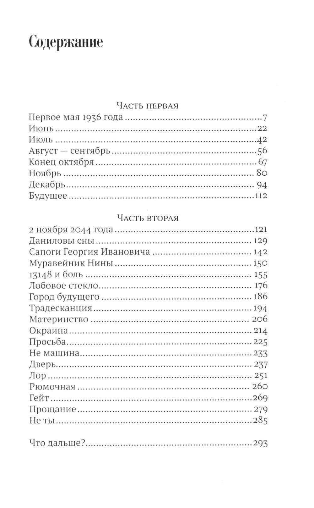 Сюжет романа - двойная временная спираль. Первое действие разворачивается в Москве 1936 года, второе - спустя более чем сто лет. Истории драматического прошлого и тоталитарного будущего сплетаются в высказывание о необходимости совершать невозможные выборы. Но в центре сюжета не приметы трагической эпохи и мрачное предостережение, а люди, их судьбы, их готовность сделать трудный выбор в пользу спасения чьей-то жизни.| Издательство | Альпина нон-фикшн |