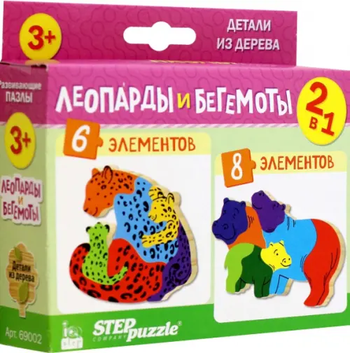 Puzzle 2в1 из дерева Леопарды и бегемоты