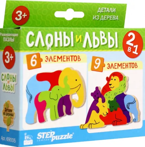 Puzzle 2в1 из дерева Слоны и львы