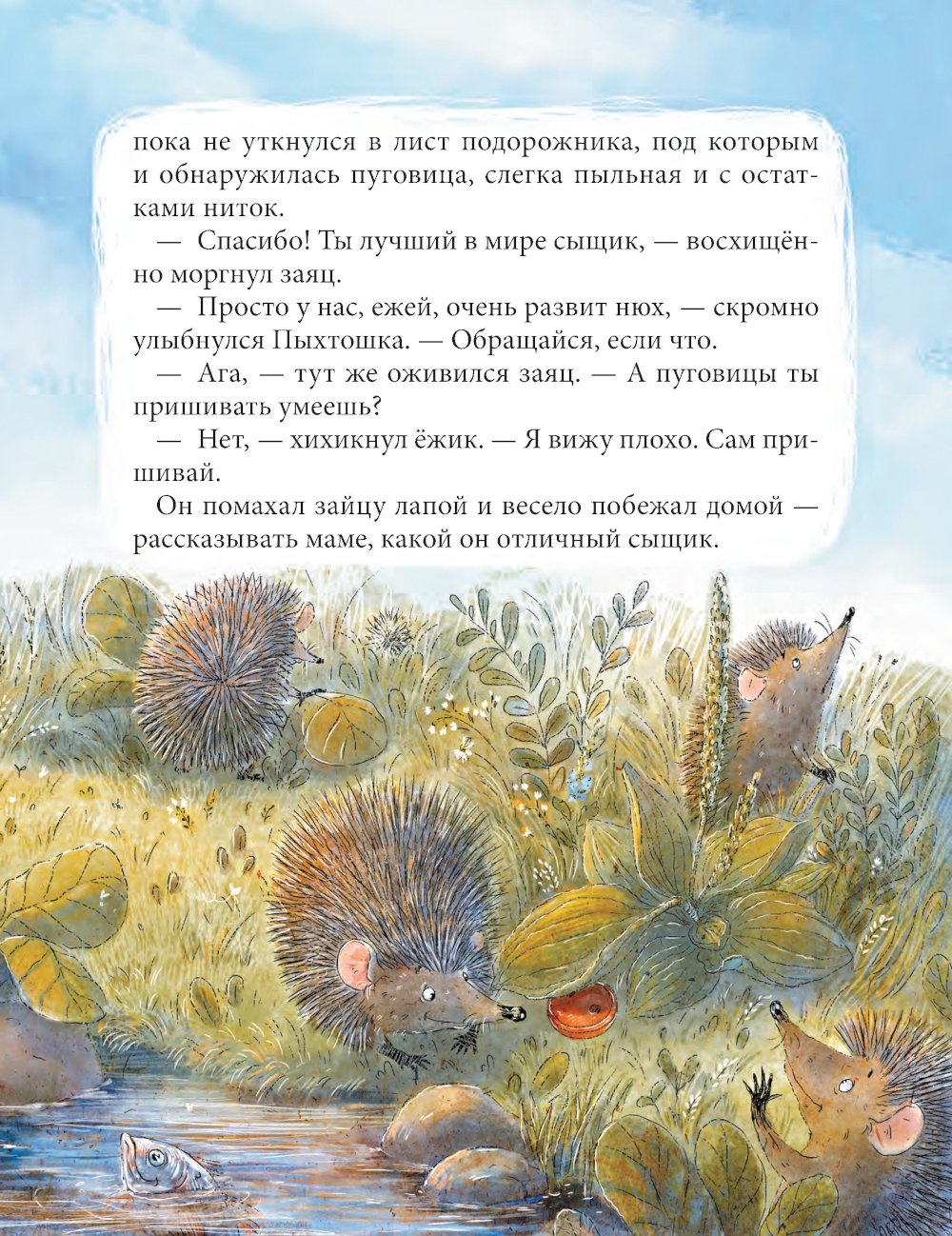 Непоседливый и любознательный ёжик Пыхтошка вечно попадает во всякие истории. То волка напугает, то пожар устроит, а то и вовсе в лесу потеряется! Но разве можно сидеть дома, когда вокруг столько всего интересного?! Добрые познавательные сказки про крохотного Пыхтошку обязательно понравятся самым маленьким читателям и научат их добру, любви и справедливости.