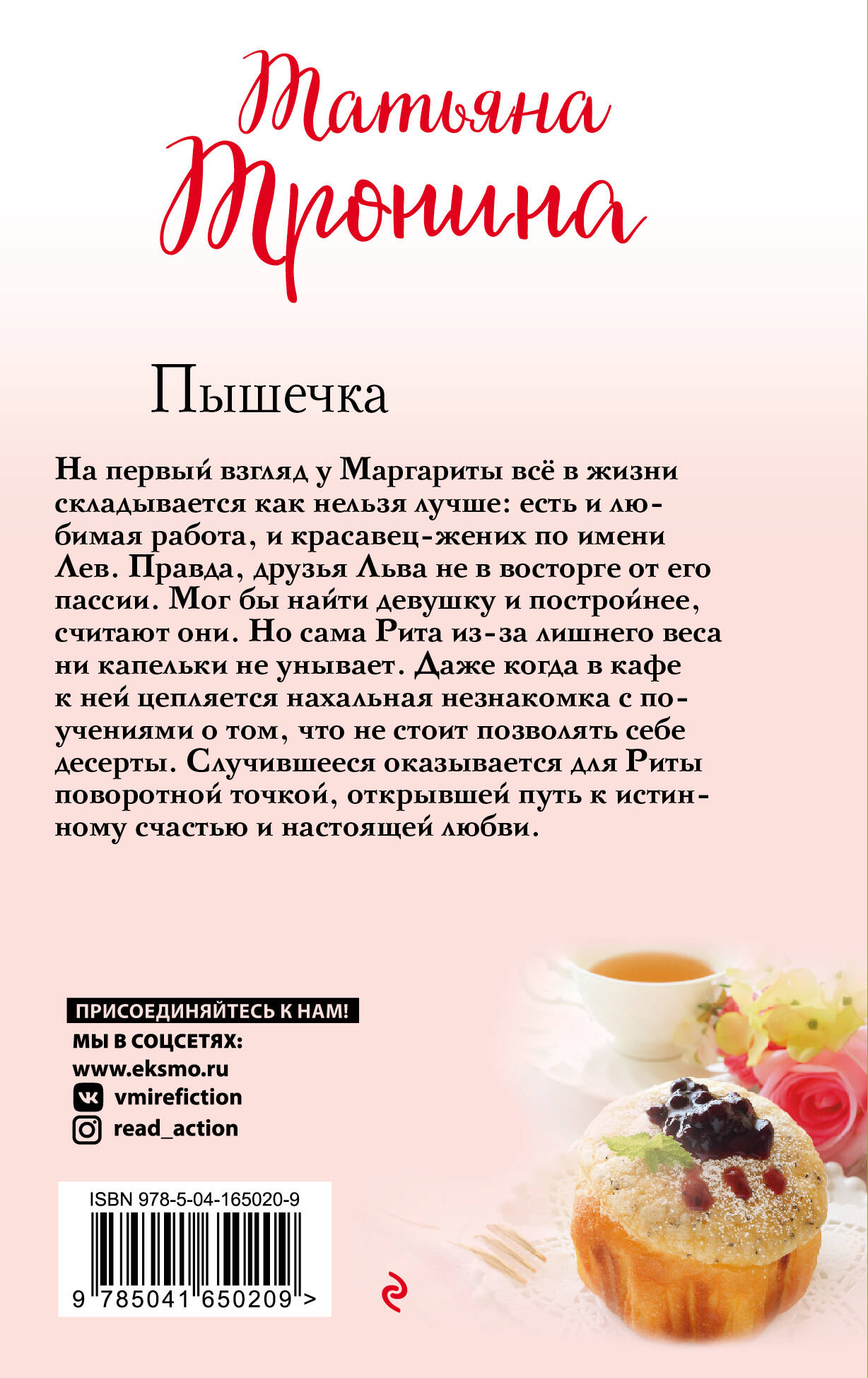 Самое главное в серии «Уютный роман» - это возможность закутаться в новую историю, как в теплый плед, и приятно провести свой свободный вечер. Тиражи раскупаются уже за первые недели продаж! Успейте ухватить себе кусочек уюта! На первый взгляд у Маргариты всё в жизни складывается как нельзя лучше: есть и любимая работа, и красавец-жених по имени Лев. Правда, друзья Льва не в восторге от его пассии. Мог бы найти девушку и постройнее, считают они. Но сама Рита из-за лишнего веса ни капельки не унывает. Даже когда в кафе к ней цепляется нахальная незнакомка с поучениями о том, что не стоит позволять себе десерты. Случившееся оказывается для Риты поворотной точкой, открывшей путь к истинному счастью и настоящей любви.| Издательство | Эксмо |
