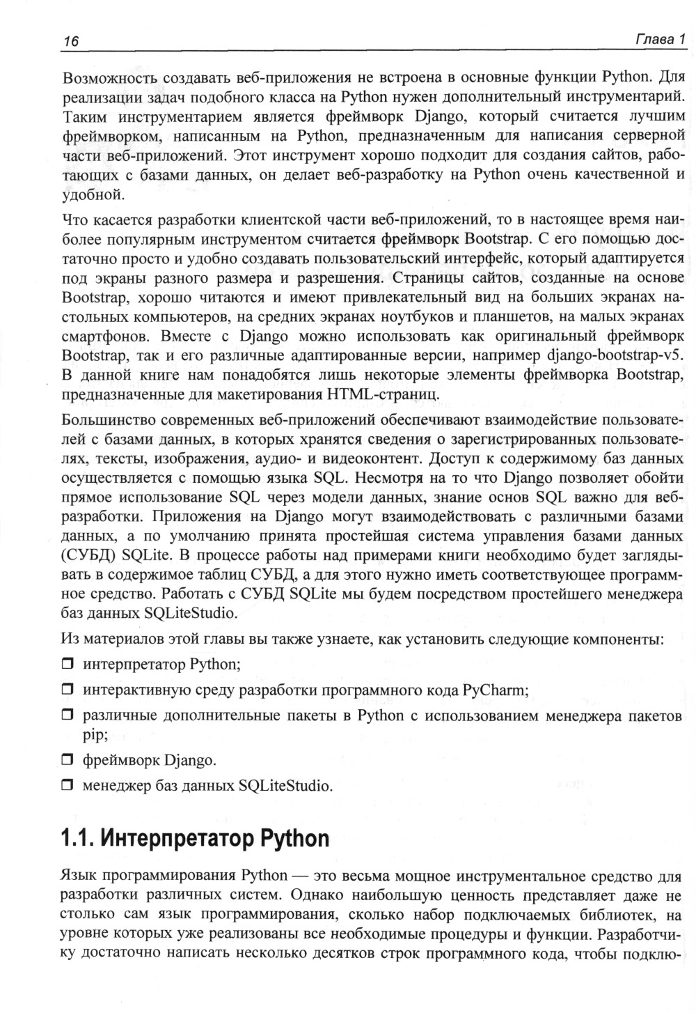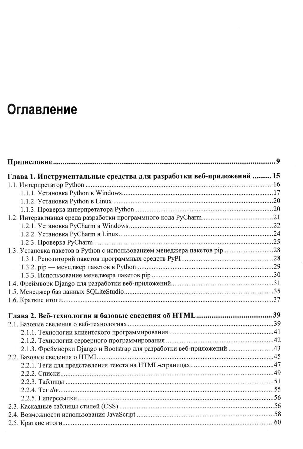 Книга посвящена вопросам разработки веб-приложений с использованием языка Python, фреймворков Django, Bootstrap и интерактивной среды разработки PyCharm. Рассмотрены основные технологии и рабочие инструменты создания веб-приложений. Описаны фреймворки Django, Bootsrtap и структура создаваемых веб-приложений. На простых примерах показана обработка и маршрутизация запросов пользователей, формирование ответных веб-страниц. Рассмотрено создание шаблонов веб-страниц и форм для пользователей. Показано взаимодействие пользователей с различными типами баз данных через модели. Описана работа с базами данных через встроенные в Django классы без использования SQL-запросов. Приведен пошаговый пример создания сайта - от его проектирования до формирования программных модулей и развертывания сайта в Интернете с базами данных SQLite и MySQL. Электронный архив на сайте издательства содержит коды всех примеров.| Издательство | BHV(БХВ) |