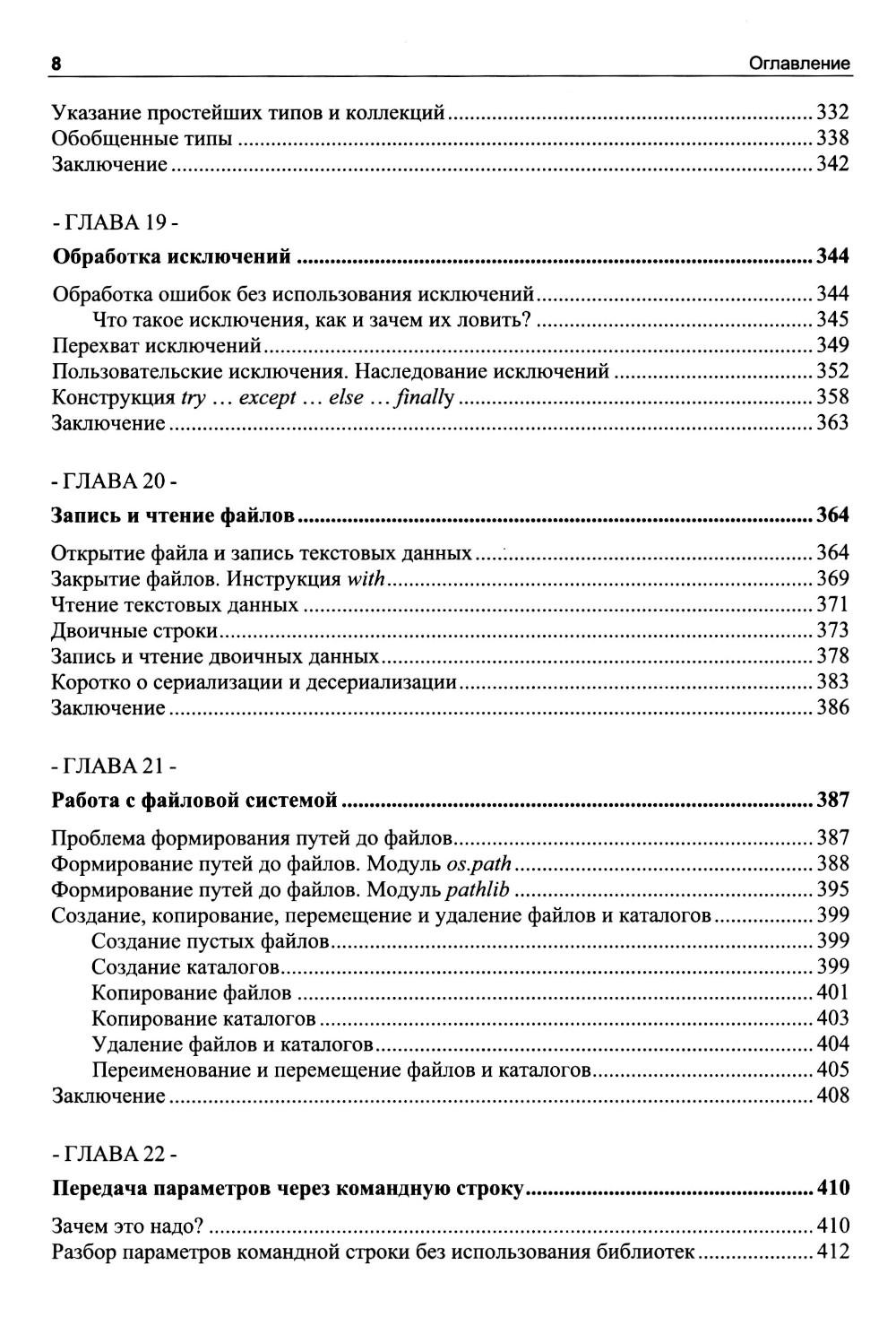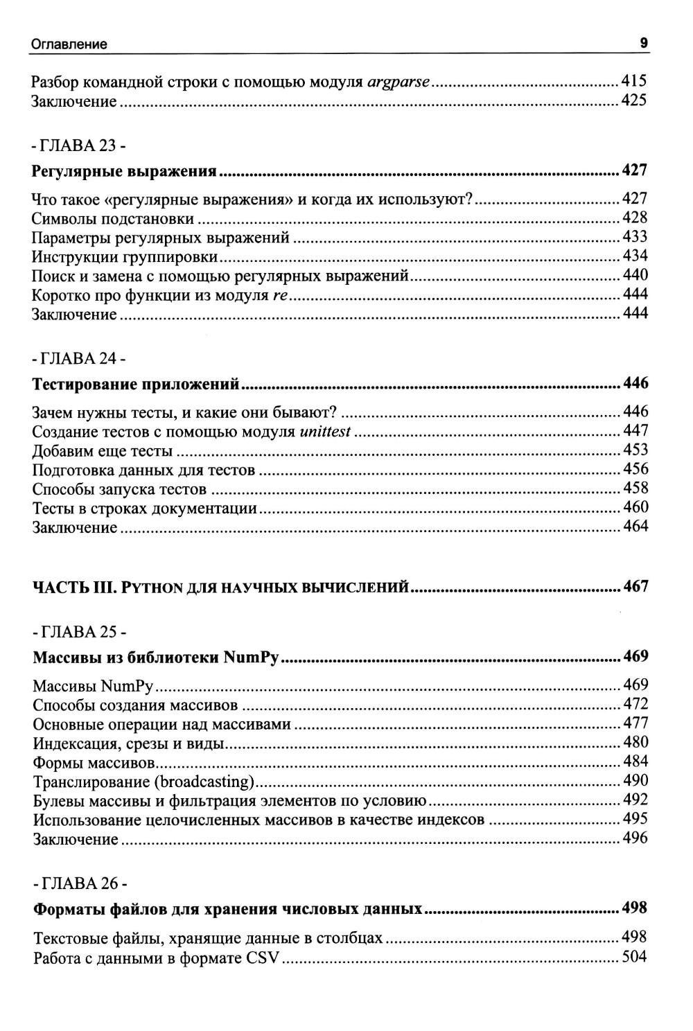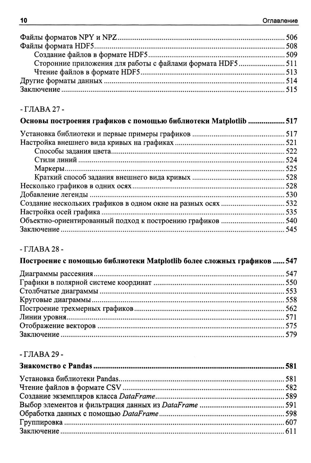 Книга предназначена для изучения языка Python с ориентацией на использование его в инженерных и научных вычислениях, начиная с установки интерпретатора и изучения основ языка и до применения специализированных библиотек. Основные темы касаются встроенных типов языка, функций и аннотации типов, особенностей динамической типизации, форматирования и обработки текста, в том числе с использованием регулярных выражений, работа с файлами. Подробно рассматриваются основные идеи объектно-ориентированного программирования и его особенности в Python. Также затрагиваются темы обработки исключений, тестирования приложений, описываются некоторые модули из стандартной библиотеки, а также множество сторонних библиотек, в частности, NumPy для математических вычислений, Pandas для обработки табличных данных, Matplotlib для построения различных видов графиков, библиотеки для работы с различными форматами файлов. Рассматриваются такие инструменты, как IPython и JupyterLab, применяемые в научных и инженерных областях.