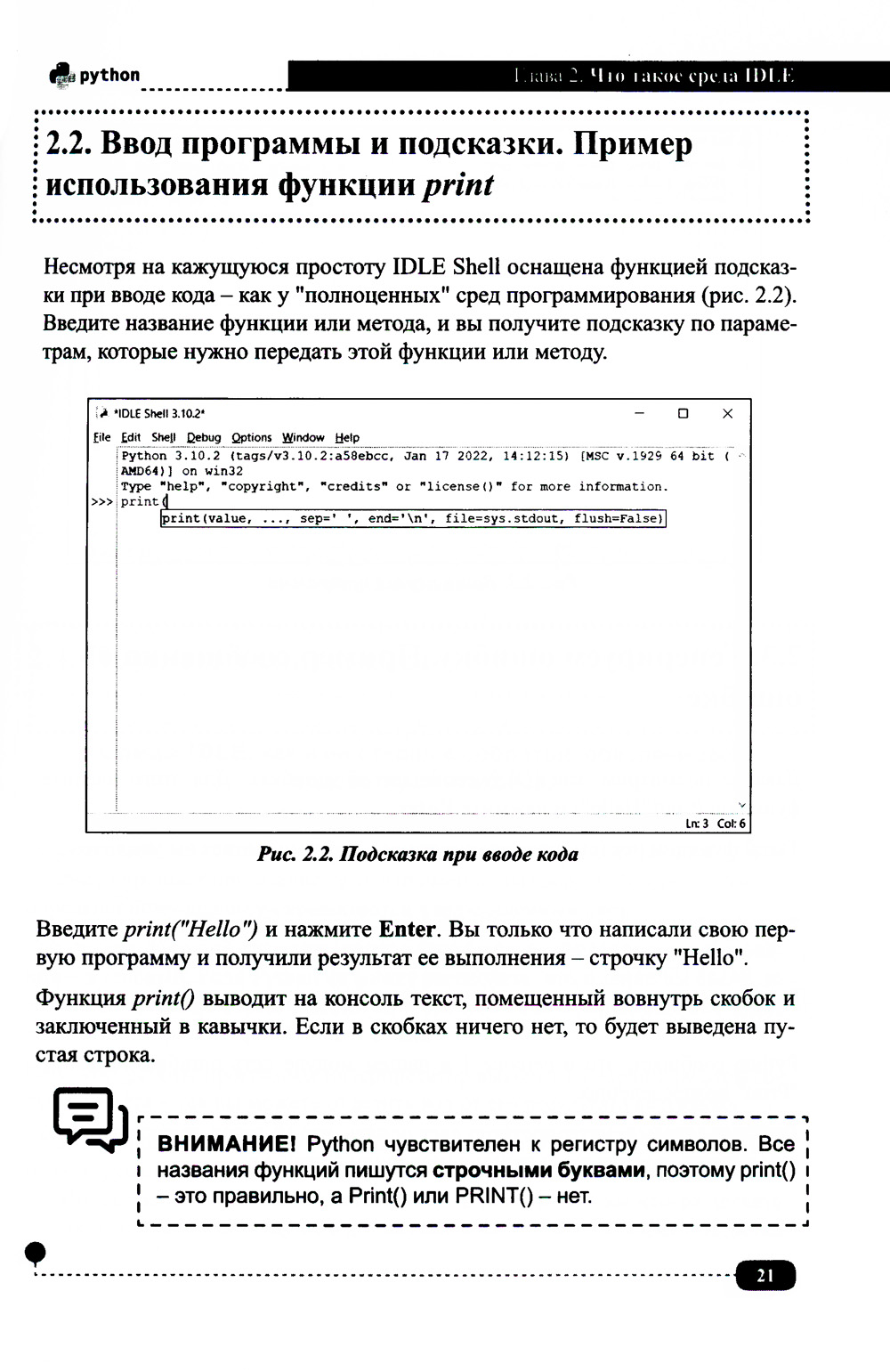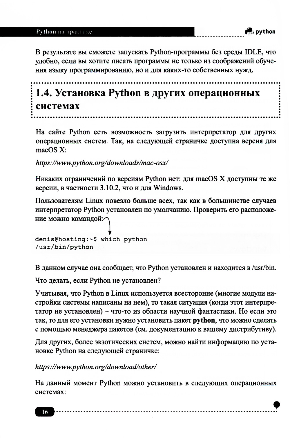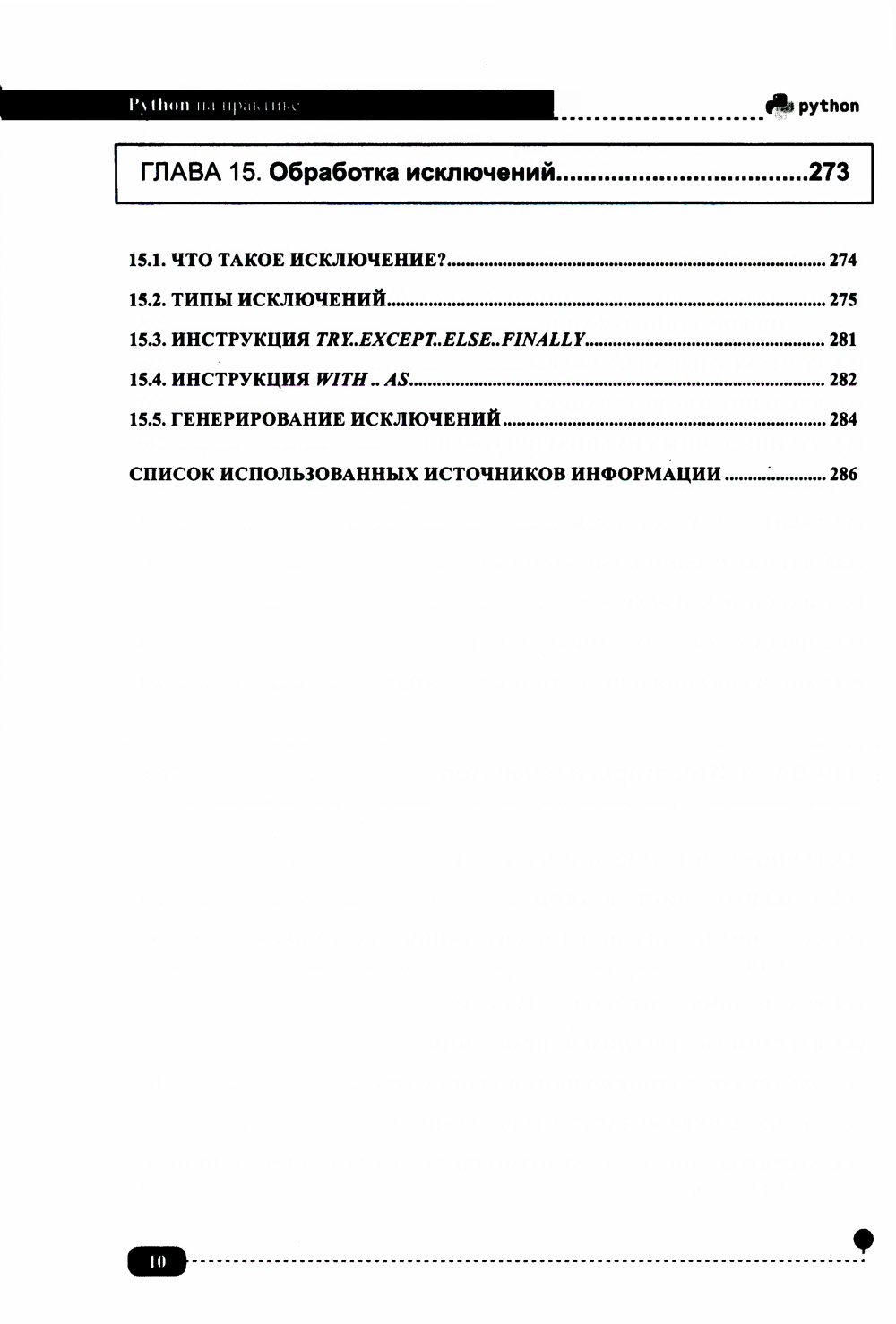 Данная книга поможет вам начать освоение одного из самых популярных языков программирования современности - Python. В книге базовая теоретическая часть Python, позволяющая ориентироваться в языке и создавать свои программы, сопровождается большим количеством примеров ее использования - от самых основ (переменные и типы данных; операторы и циклы; математические функции и регулярные выражения; строки, списки, множества, словари, кортежи) - до более продвинутых тем (типы файлов; генераторы и итераторы; обработка исключений и т.д.). Книга будет полезна как для тех, кто только заинтересовался Python, так и для тех, кто хочет улучшить свои навыки в программировании на Python.| Издательство | Наука и техника |