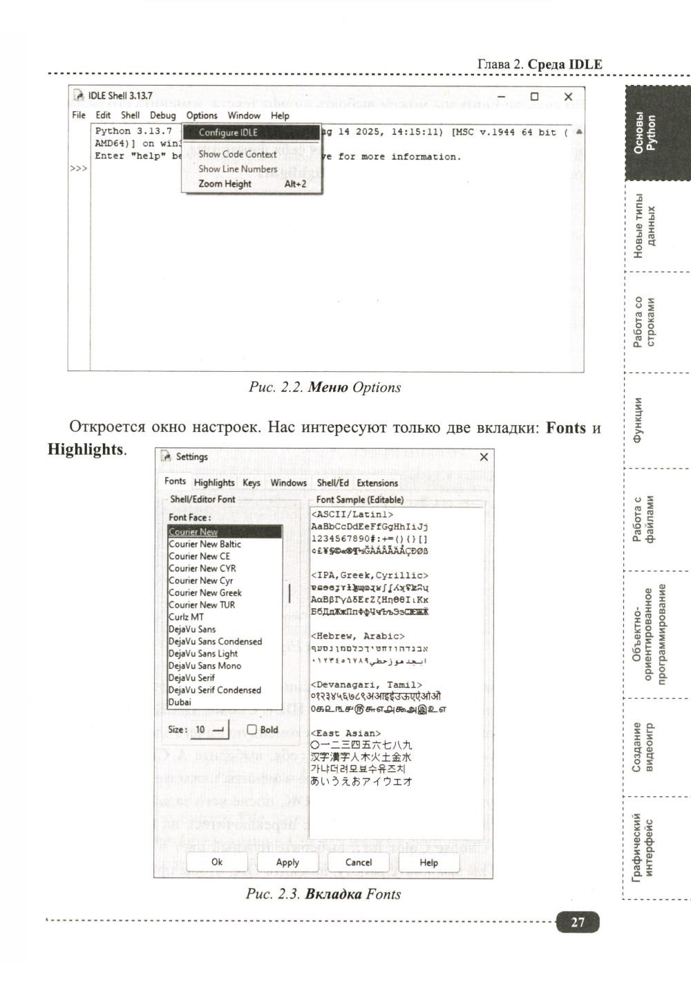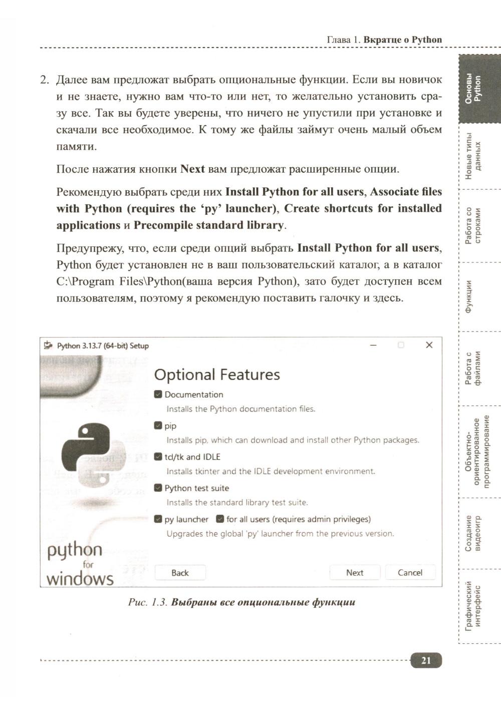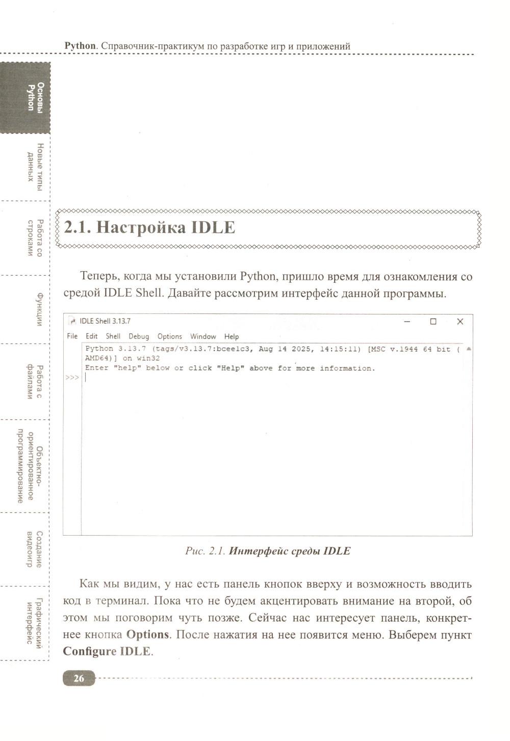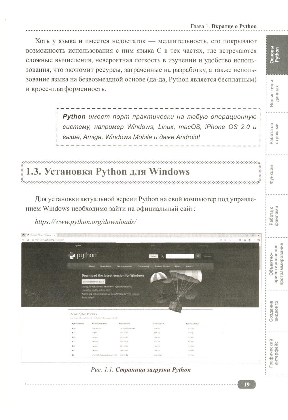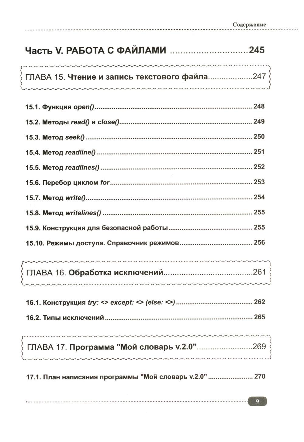 Данная книга будет полезна всем, кто интересуется Python: для начинающих она будет практическим руководством с примерами, а для более опытных программистов удобным справочником, позволяющим быстро находить нужную информацию под рукой. Упор в книге сделан на практику, которая подаётся в простой для понимания форме, а её сложность возрастает по мере продвижения: от основных концепций Python (среда IDLE, работа с файлами, переменные, типы данных, операторы, функции, циклы и т.д.) до более сложных и многогранных аспектов (объектно-ориентированное программирование (ООП), библиотека pygame, создание графических интерфейсов, работа с tkinter и т.д.). В каждом разделе для закрепления информации рассмотрено создание различных развивающих игр и программ с пошаговым разбором кода, а также имеются задания для самостоятельного выполнения, которые помогут развить логическое мышление и навыки написания своего собственного кода. К книге прилагается виртуальный диск с играми и программами, рассмотренными в книге, это позволит Вам наглядно попрактиковаться в создании собственных игр и приложений на Python.| Издательство | Наука и техника |