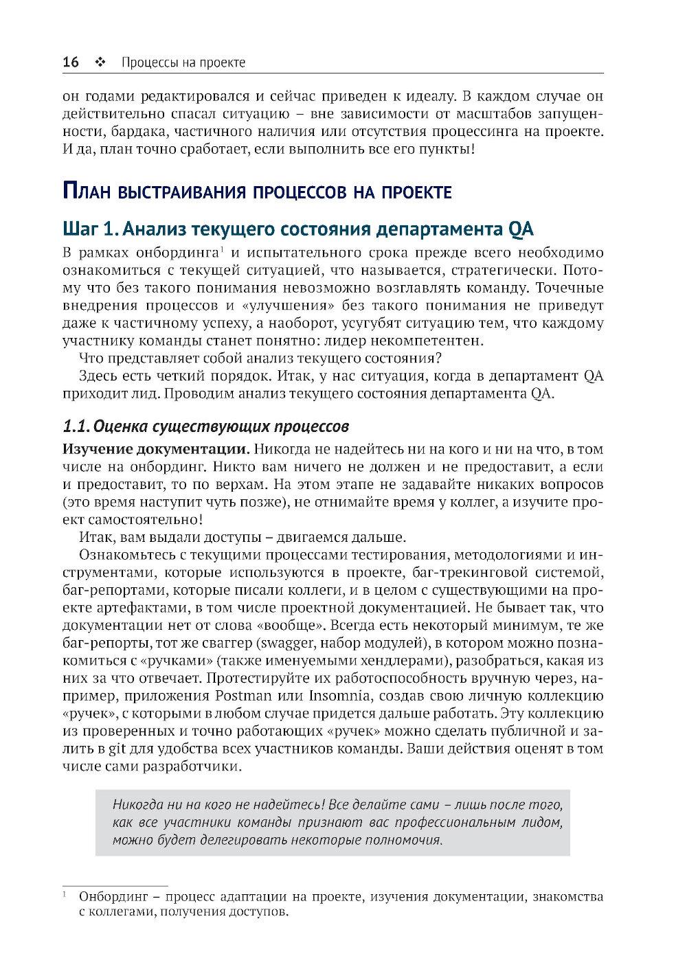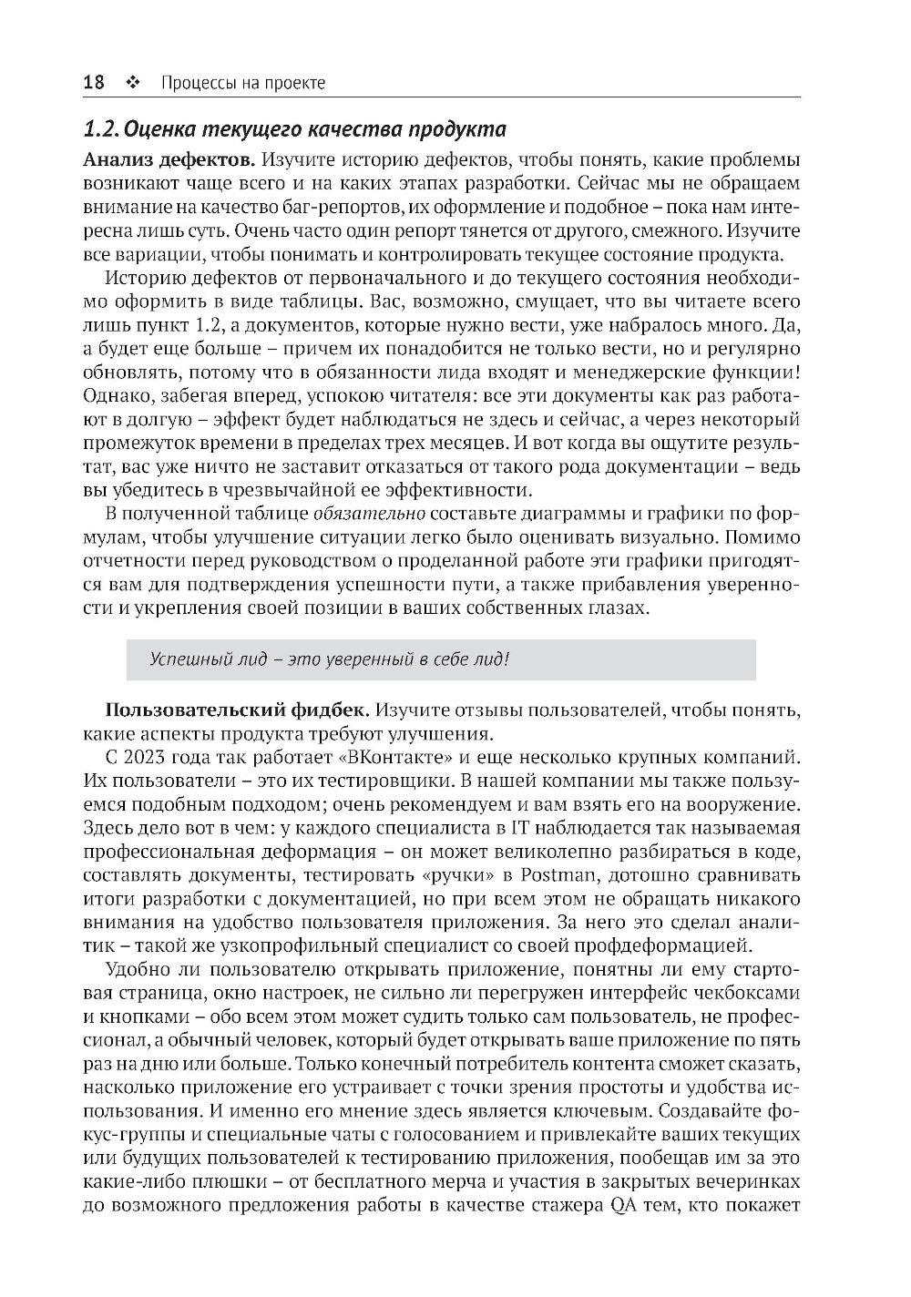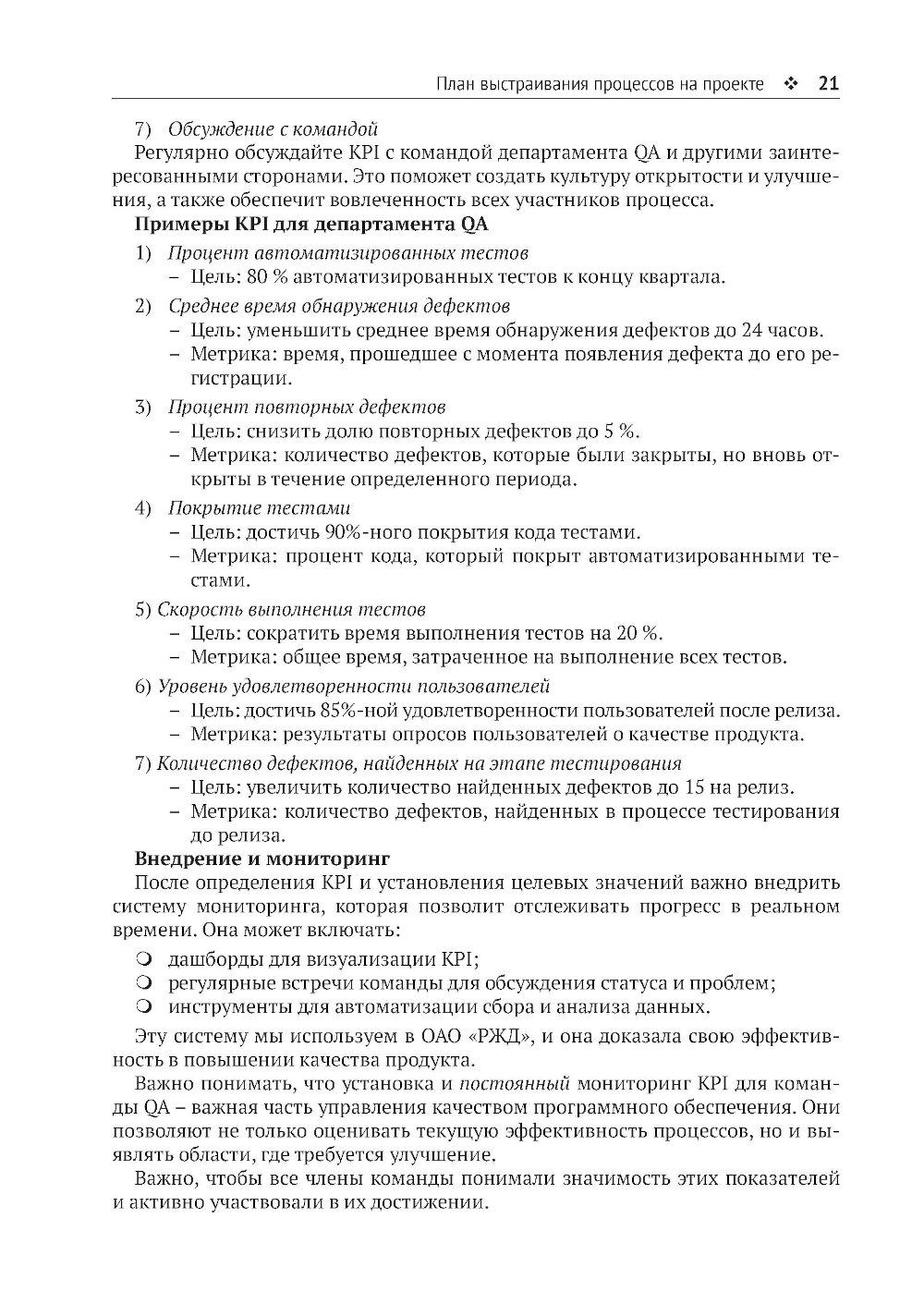 Книга освещает вопросы тестирования и формирование ключевых компетенций специалистов в области QA (Quality Assurance - обеспечения качества). В первой части рассматриваются фундаментальные понятия и процессы, связанные с тестированием, включая жизненный цикл разработки ПО, планирование тестов и создание тестовой документации. Вторая часть раскрывает секреты автоматизации тестирования, в том числе с помощью популярных инструментов. В третьей части исследуются нестандартные подходы и решения, которые помогут выйти за рамки традиционных методов тестирования. Среди рассматриваемых тем: - уровни квалификации специалистов по тестированию; - процессы на проекте; - артефакты тестирования; - среда разработки; - архитектура проекта; - как успешно пройти собеседование. Издание будет полезно как начинающим, так и опытным специалистам по QA, а также студентам, осваивающим IT-направления, и преподавателям технических вузов.| Издательство | ДМК Пресс |