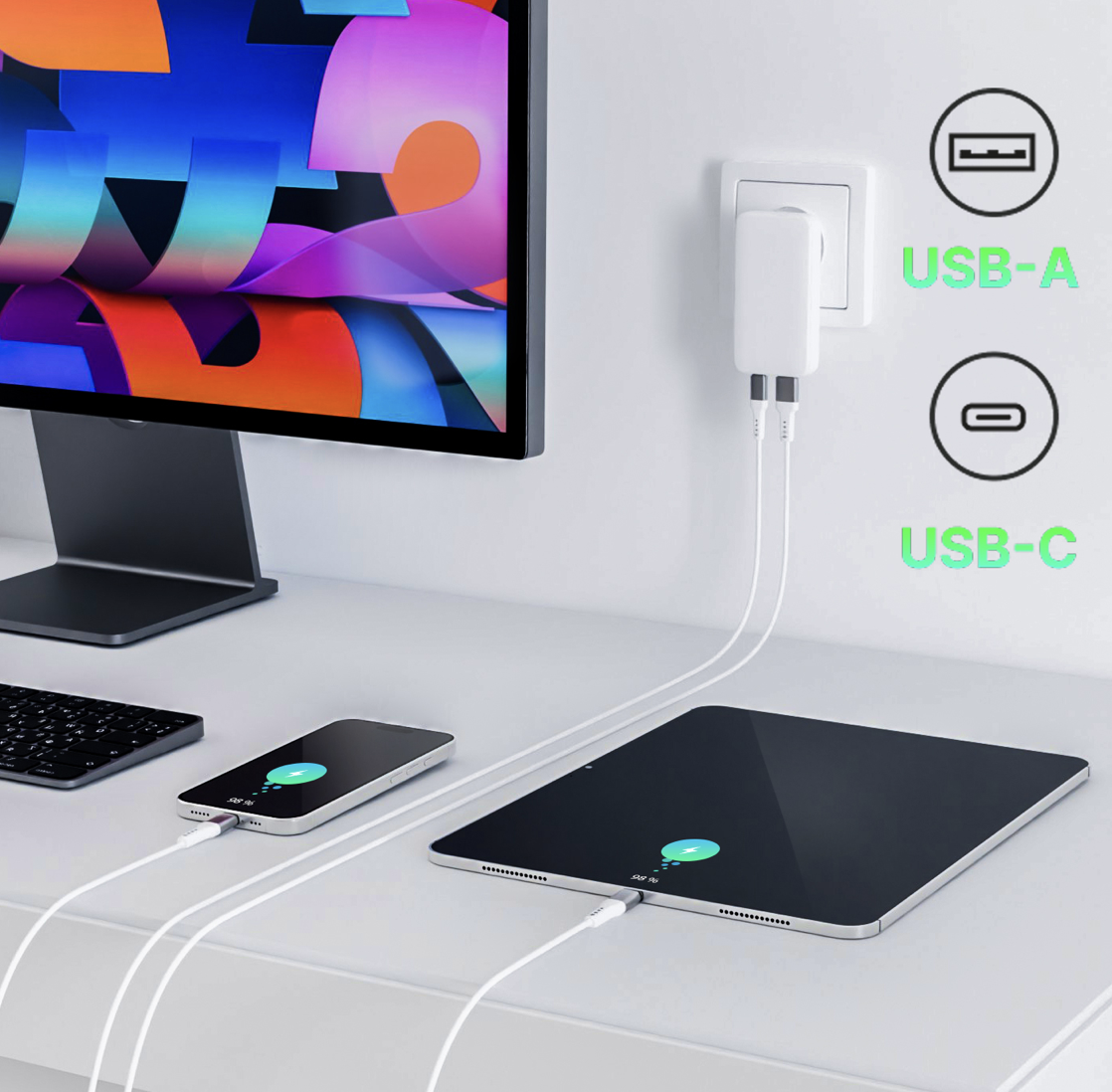 Порты: 1 × USB-A, 1 × USB-C