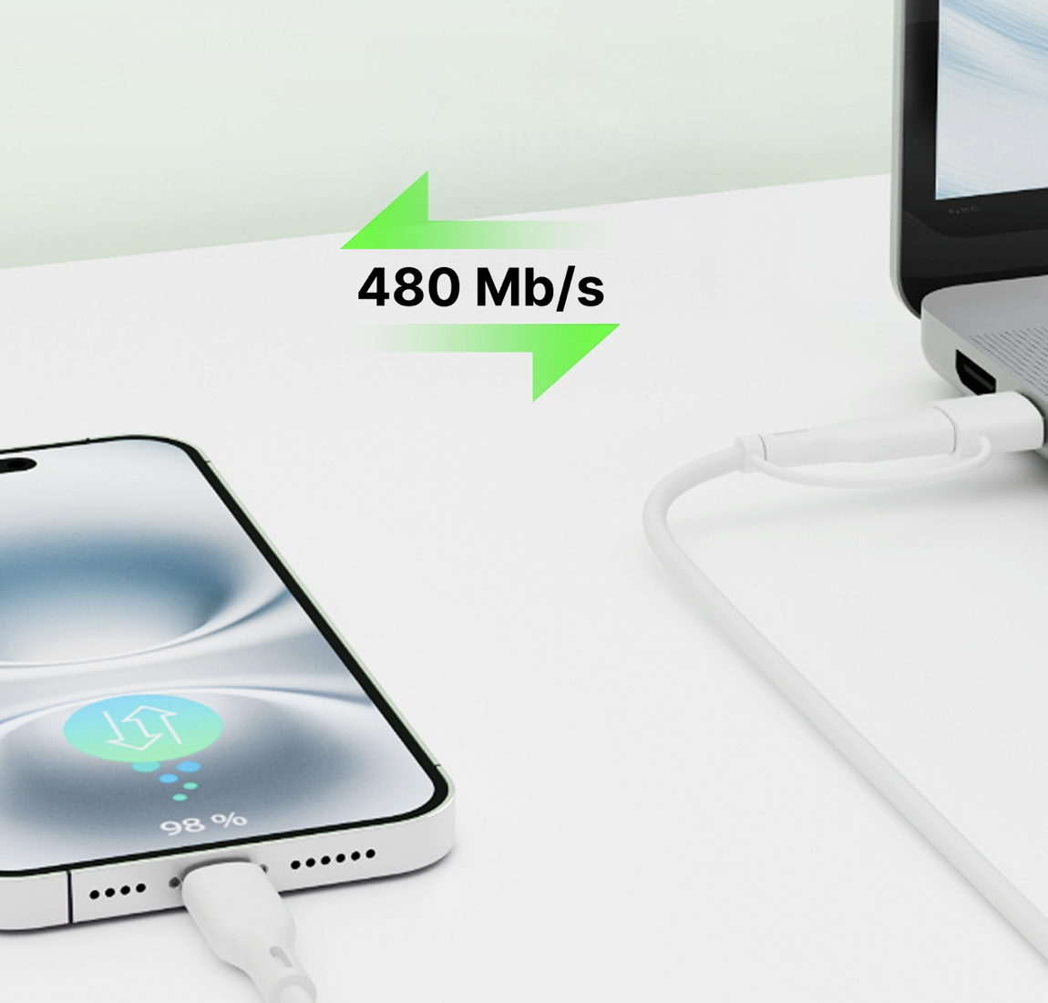 Qualo QRC-CC+A-00 Кабель 2in1 USB-C – USB-C / USB-A адаптер / 1.5 м / белый