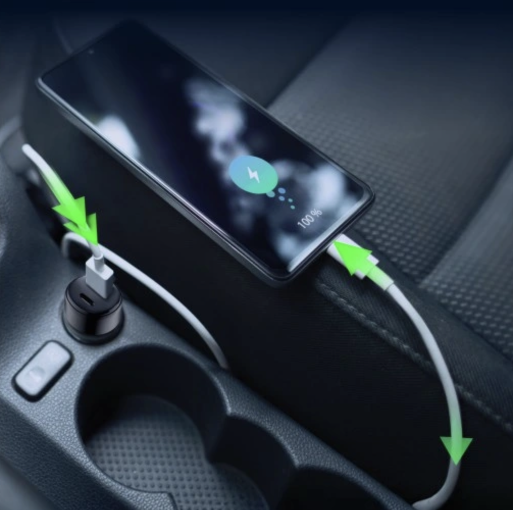 Экологичное автомобильное зарядное устройство, изготовленное из переработанных материалов (линия "Recycling"). Поддерживает быструю зарядку в машине через два порта (USB‑C и USB‑A), совместимо с протоколами Power Delivery и Quick Charge. Идеально для одновременной зарядки смартфона и другого устройства в пути.