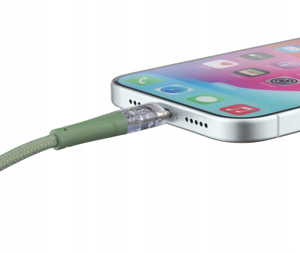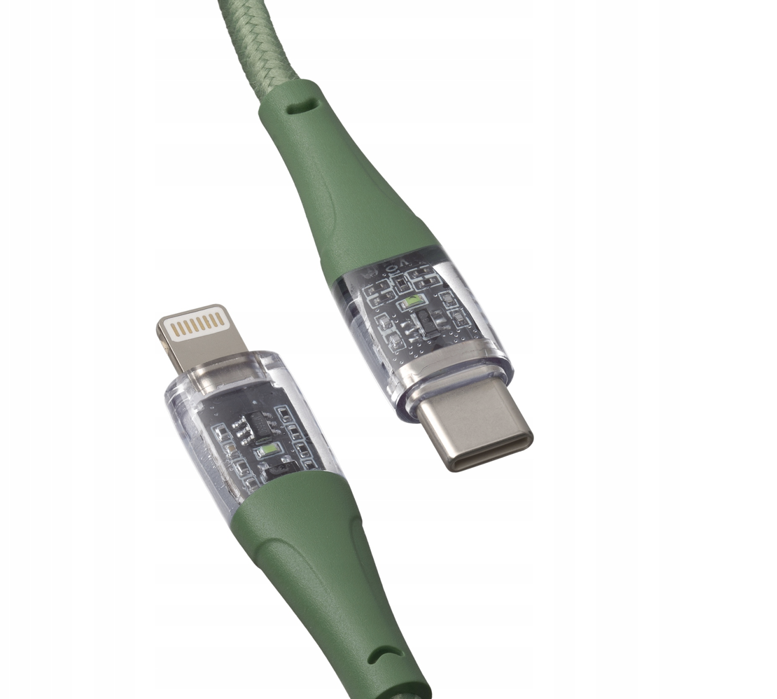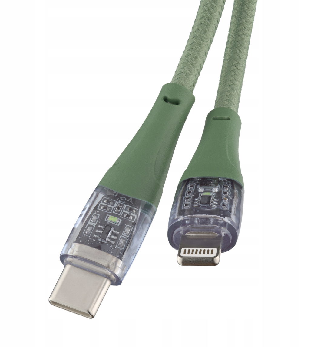 Qualo QTCN-CL-04 Transparent Nylon Kабель USB-C - Lightning / 12W / 1.5m / зеленый