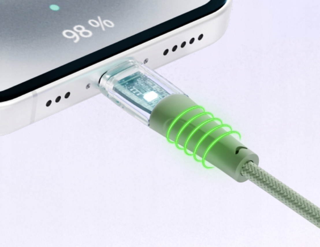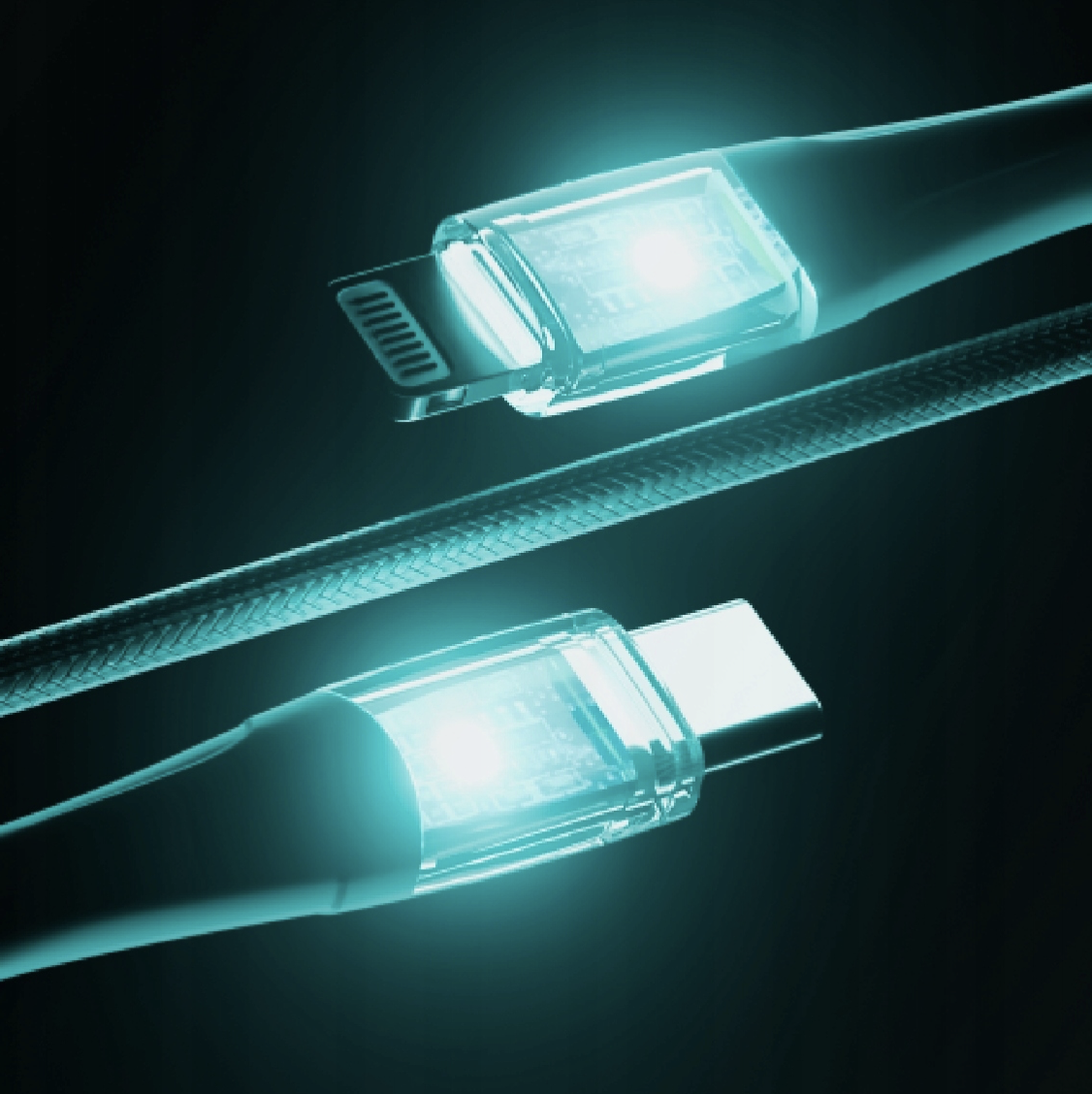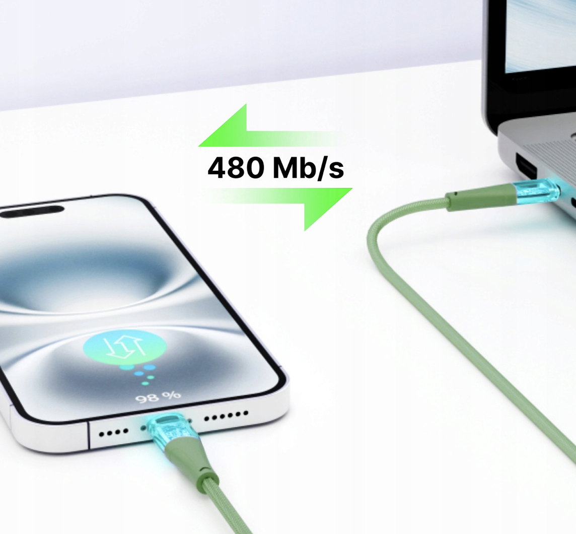 Qualo QTCN-CL-04 Transparent Nylon Kабель USB-C - Lightning / 12W / 1.5m / зеленый