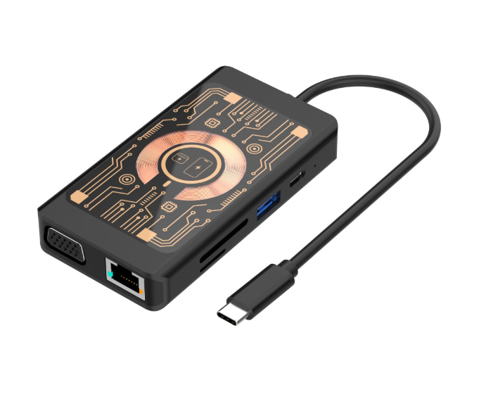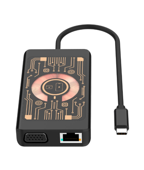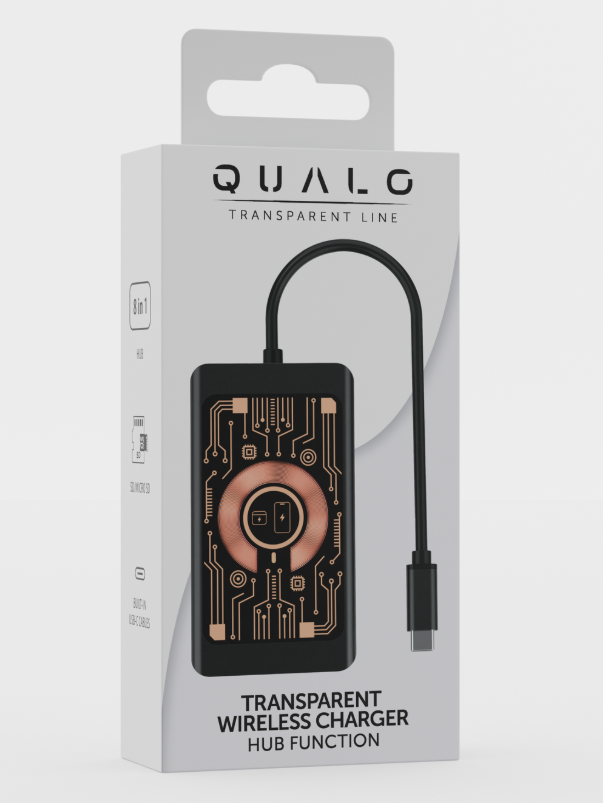 Qualo HUB 9 в 1 расширяет возможности вашего компьютера или другого устройства, обеспечивая удобный доступ к множеству портов и периферии. Позволяет подключать внешние жесткие диски, клавиатуры, мониторы и другие аксессуары, а также удобно заряжать мобильные устройства с помощью встроенного беспроводного зарядного устройства мощностью 15 Вт. Корпус хаба прозрачный, что подчёркивает его технологичный дизайн, а алюминиевое покрытие обеспечивает прочность и удобство переноски.