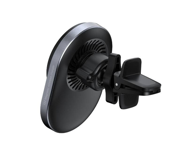 Quik Accessories QM-900 - мощный и стильный магнитный держатель для телефона в автомобильной вентиляционной решётке с передовой технологией Qi2 беспроводной зарядки. Он обеспечивает надёжную фиксацию и быструю зарядку до 15W, чтобы ваш смартфон всегда был на месте и готов к использованию.