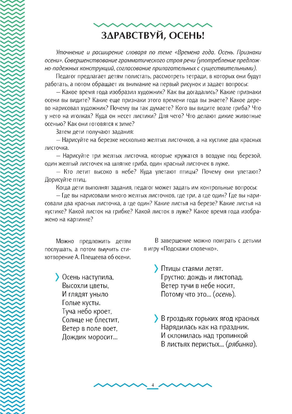 В тетради приведены задания для развития всех компонентов речевой системы у дошкольников с 4 до 5 лет. Каждая образовательная ситуация разработана по определенной лексической теме и включает в себя развивающие задания и упражнения, стихотворения и загадки. Кроме того, каждое задание предполагает работу по картинке. В конце тетради предлагается дополнительный материал к занятиям: упражнения с природными и подручными материалами и кинезиологические упражнения. Рекомендована воспитателям общеразвивающих групп ДОО и родителям дошкольников среднего дошкольного возраста.| Издательство | Детство-Пресс |