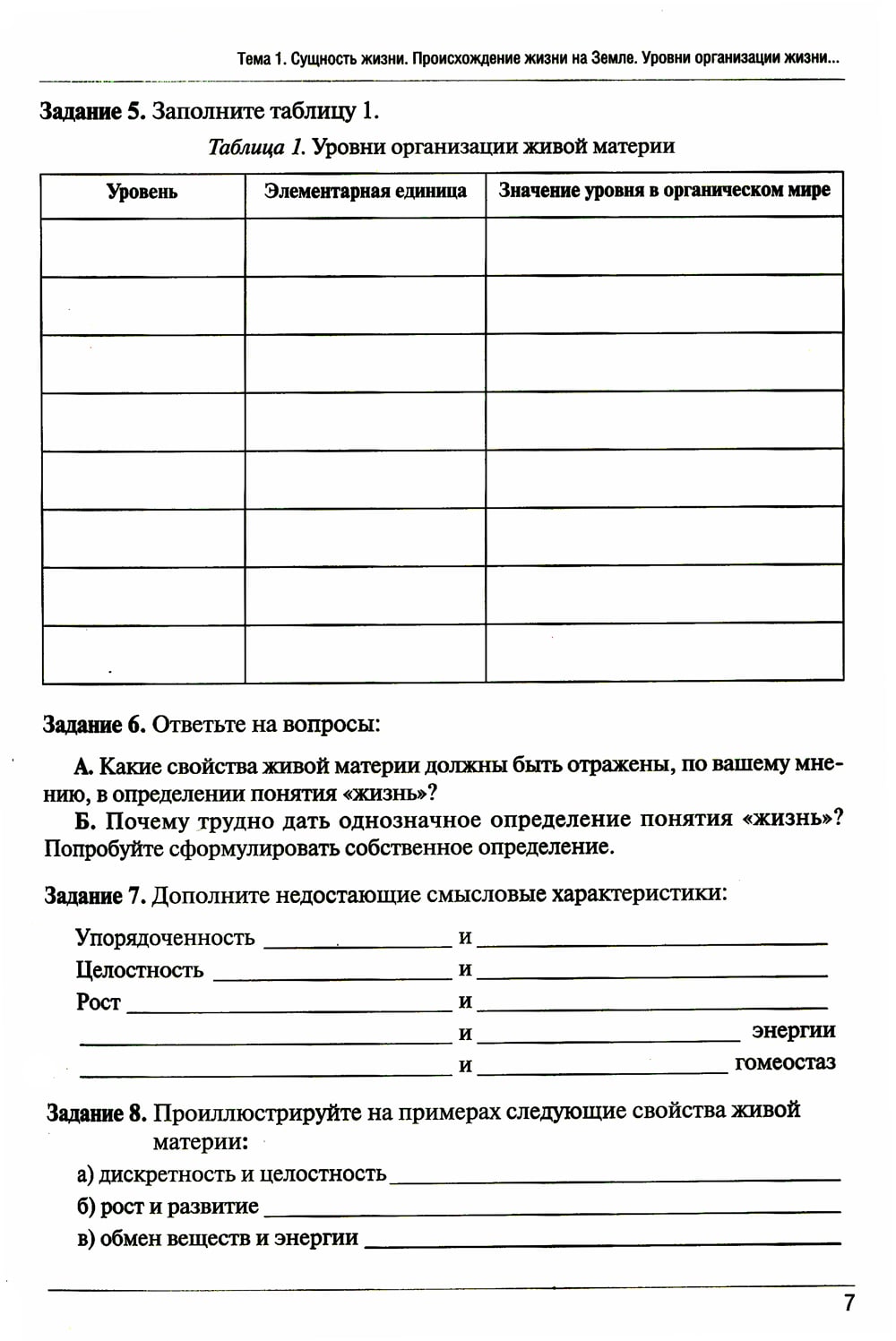 Рабочая тетрадь по биологии. Ч. 1: Учебное пособие