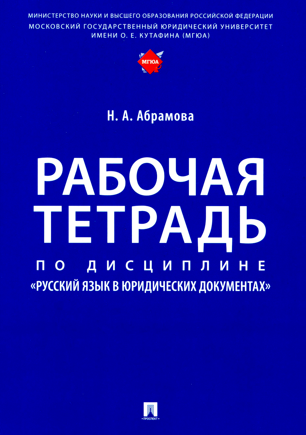 Рабочая тетрадь к учебному пособию Н.А. Абрамовой «Русский язык в юридических документах» подготовлена в соответствии с требованиями федерального государственного образовательного стандарта высшего образования по направлению подготовки 40.05.04 «Судебная и прокурорская деятельность». Содержит разнообразные задания к каждому разделу учебного пособия, выполняя которые, обучающийся сможет глубже осмыслить теоретический материал, разобраться с помещенными в пособие правилами, научится применять эти правила на практике. В рабочей тетради также предусмотрена система заданий, помогающая освоить не только новый материал, но и повторить ранее изученный, что способствует выработке устойчивых навыков грамотного письма и речи. Для студентов юридических факультетов и вузов, обучающихся по программам бакалавриата и специалитета, а также всех интересующихся теоретическими и прикладными аспектами русского литературного языка.| Издательство | Проспект |