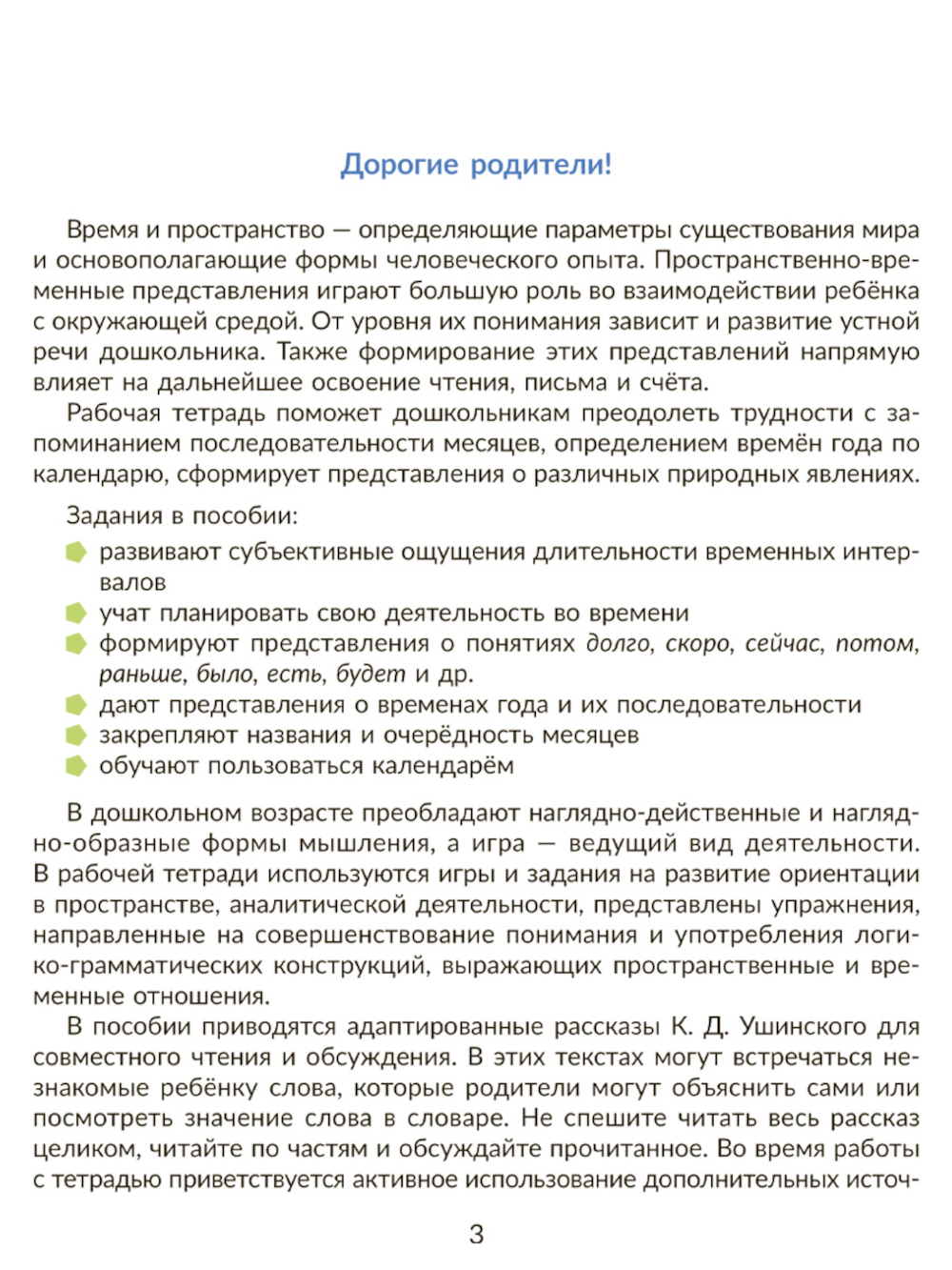 Пространственно-временные представления играют большую роль в развитии ребенка. От уровня сформированности этих понятий зависит развитие устной речи дошкольника, а также это база для усвоения чтения, письма и счета. Книга будет полезна для дошкольников, которые испытывают трудности в запоминании последовательности дней недели, месяцев, определении времени года с помощью календаря. При выполнении заданий пособия у детей развивается лексика, мелкая моторика, графические навыки, зрительно-двигательная координация, ориентация в пространстве и на листе бумаги. Авторы книг - высококвалифицированные специалисты в области логопедии, дефектологии, коррекционной педагогики, работе с детьми с ограниченными возможностями здоровья и детьми аутического спектра.| Издательство | ИД ЛИТЕРА |