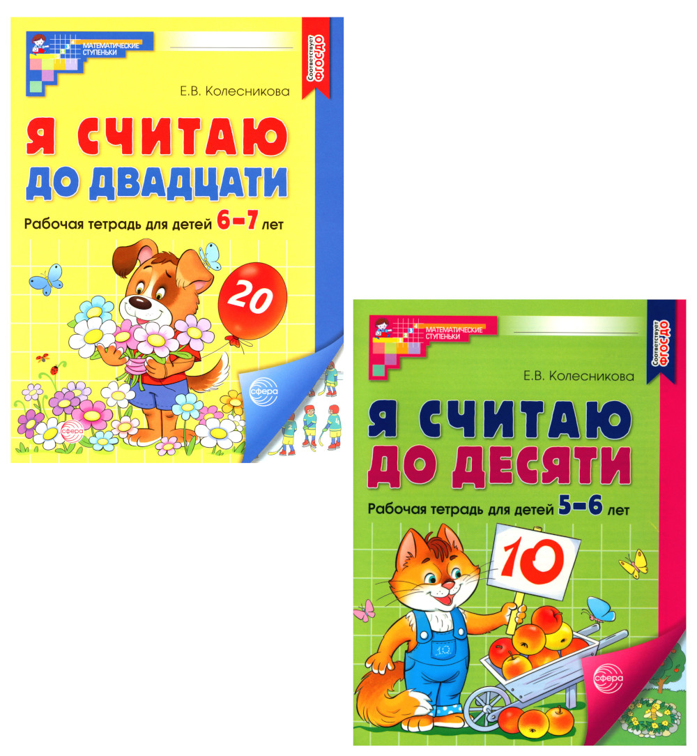 Комплект состоит из 2 тетрадей: 1. Я считаю до десяти. ЦВЕТНАЯ. Рабочая тетрадь для детей 5-6 лет; 2. Я считаю до двадцати. ЦВЕТНАЯ. Рабочая тетрадь для детей 6-7 лет.| Издательство | Творческий центр Сфера |