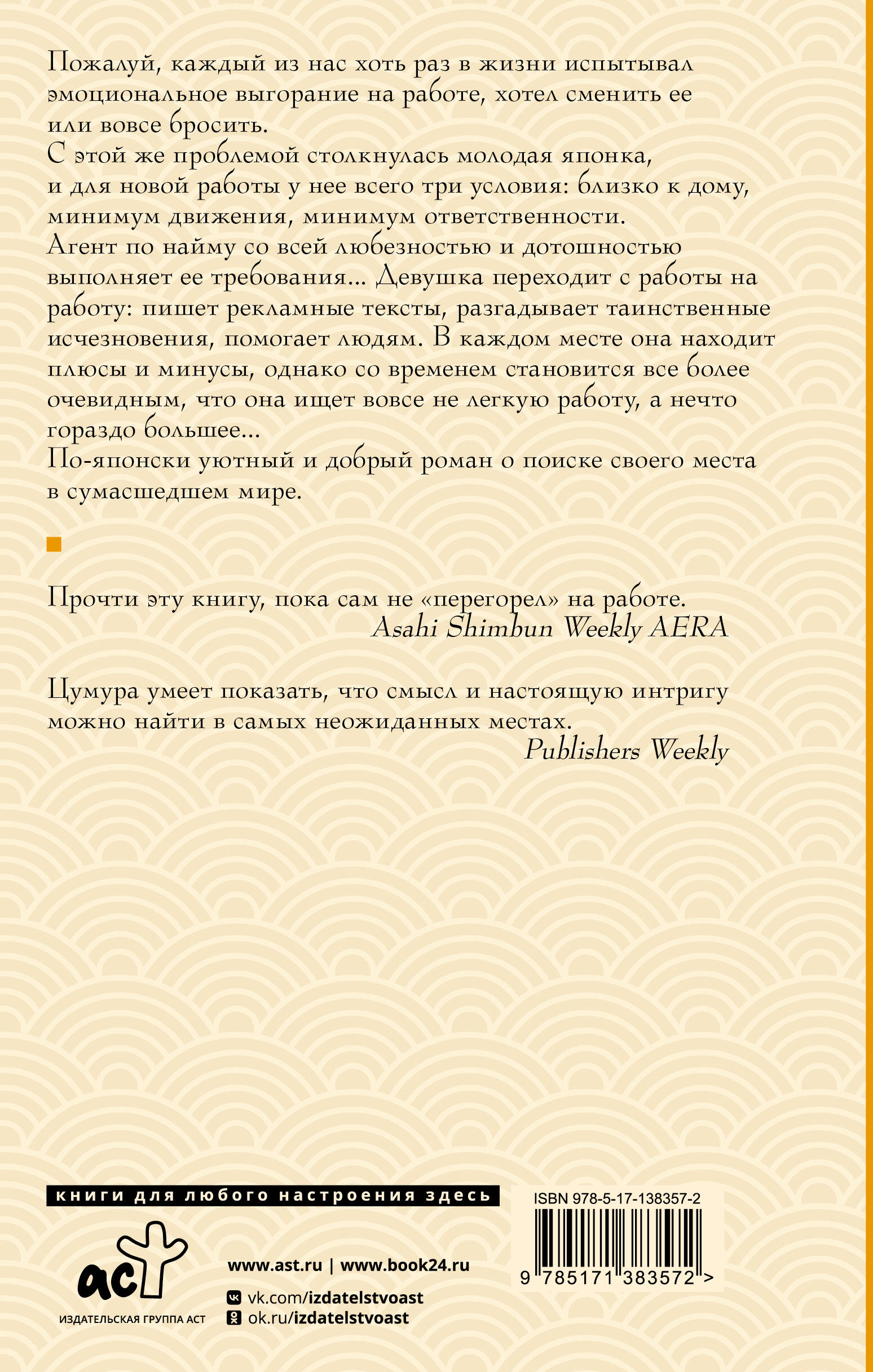 Впервые на русском языке! Для всех поклонников азиатской культуры и литературы. «Работа легкой не бывает» - ироничный роман о девушке, потерявшей вкус к жизни и работе, но не сдающейся в поиске своего идеального места. Кикуко Цумура - популярная японская писательница, лауреат множества литературных наград, в том числе премии Акутагавы и премии Noma. Её работы публикуются на русском языке впервые.| Издательство | ИЗДАТЕЛЬСТВО "АСТ" |