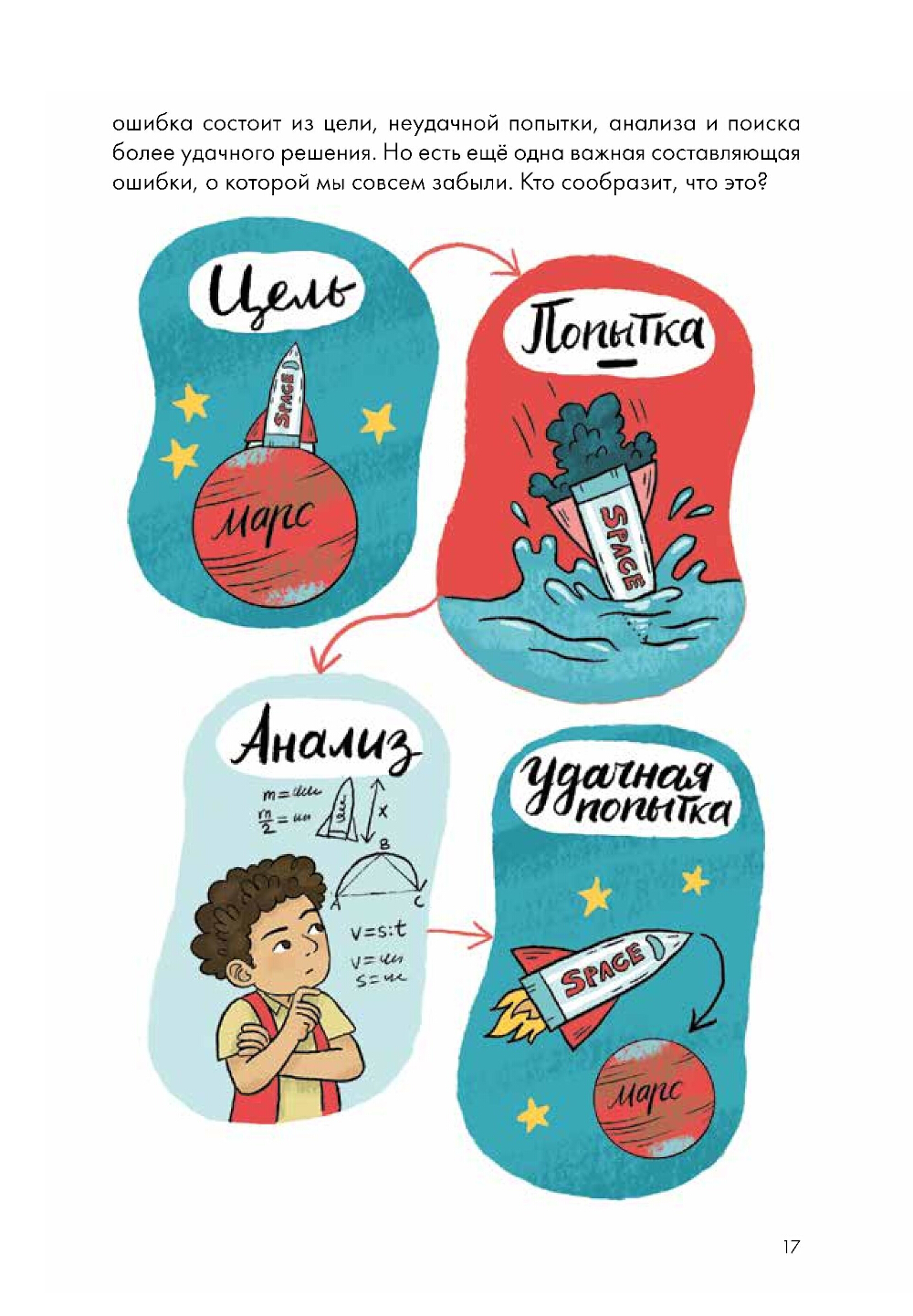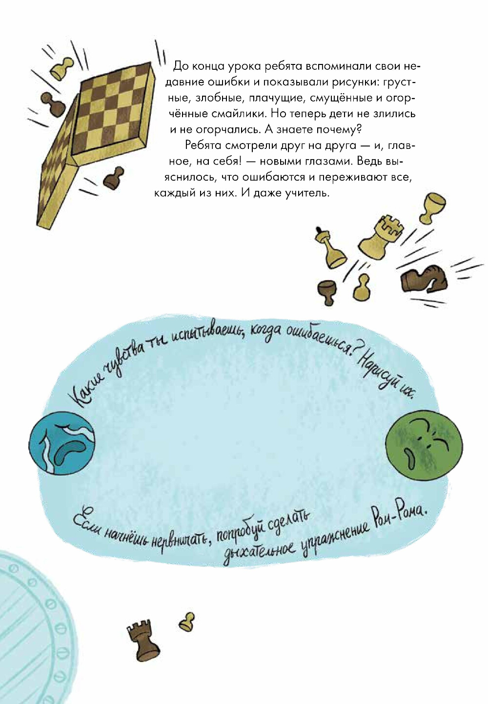Ученики 303 «А» класса ужасно боялись ошибок. Анюта не хотела плохо выступить на концерте, Карен переживал, что над ним будут смеяться, а Аюру просто становилось плохо от одной мысли о провале. Тогда их учитель Ром-Ром предложил вместе сделать работу над ошибками - но не обычную, а эмоциональную. Вместо чтения наизусть и письма ребята представляли свои эмоции в виде эмодзи, придумывали для них цвет, а еще рисовали свою... внутреннюю обезьянку! Ваш ребенок тоже может выполнить эти задания вместе с героями. Заодно он научится определять и контролировать свои эмоции, поймет, что ошибаться - это нормально и полезно, и запомнит, что любой цели можно достигнуть. Главное, не сдаваться и пробовать новое! Серия Life skills - это рассказы, благодаря которым дети без труда усвоят важные социальные и эмоциональные уроки.| Издательство | Альпина Паблишер |