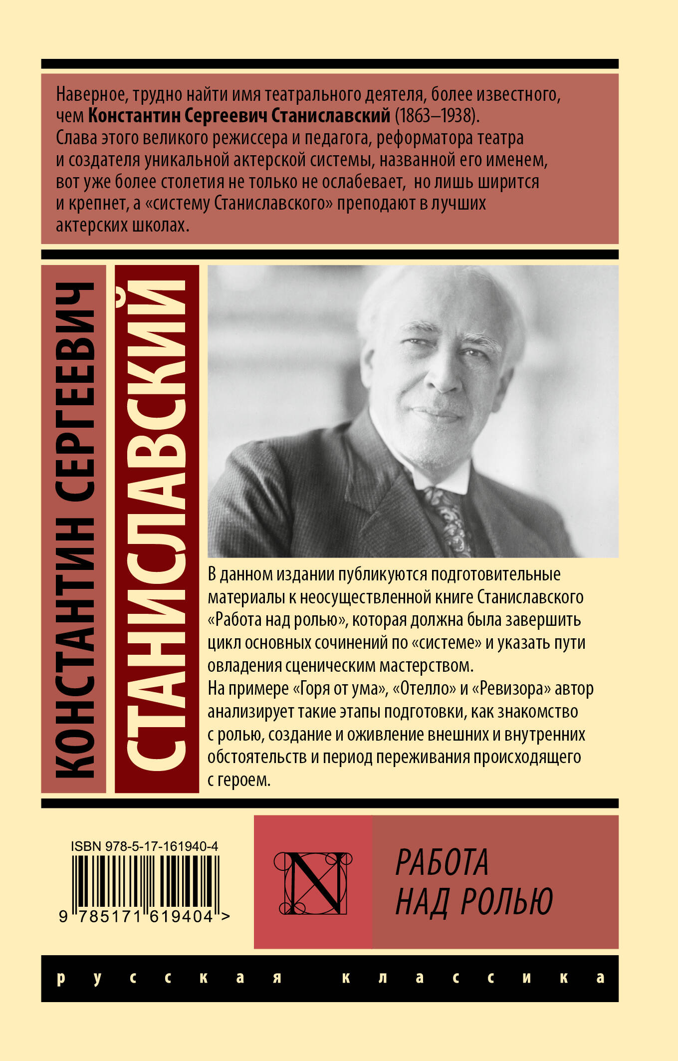В данном издании публикуются подготовительные материалы к неосуществленной книге Станиславского "Работа над ролью", которая должна была завершить цикл основных сочинений по "системе" и указать пути овладения сценическим мастерством. На примере "Горя от ума", "Отелло" и "Ревизора" автор анализирует такие этапы подготовки, как знакомство с ролью, создание и оживление внешних и внутренних обстоятельств и период переживания происходящего с героем.| Издательство | Издательство "АСТ" |