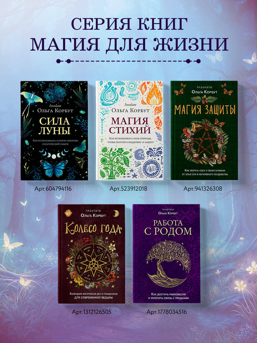 Укрепите связь с предками и получите поддержку рода с новой книгой Ольги Корбут, рунолога и специалиста по практической магии. Помните: у всех нас есть любящие предки, которые хотят, чтобы мы жили счастливо, выполнили свое предназначение и прославили род. Поддерживая и укрепляя связь со своими предками, вы никогда не будете одиноки или покинуты, ведь мудрость ваших предков всегда остается с вами. В этой книге вы найдете: • Древние и современные традиции и обычаи почитания рода и предков у разных народов. • Практики по увеличению силы рода и укреплению связи с предками. • Расклады на Таро и рунах для диагностики родового негатива, защиты и своего места в роду. • Методики исцеления рода, нейтрализации негатива и гармонизации отношений с предками. • А также: алтарь предков, обряды почитания предков, защитные ставы, сезонные ритуалы, чистки… И многое другое! Ольга Корбут, также известная в Сети как Insolate, - эзотерик, рунолог, таролог, практикующий психолог. Создатель школы саморазвития «Magiclife» и сообщества «Руны XXI», автор книг, в числе которых «Руны. Теория и практика работы с древними силами», «Магия стихий. Как использовать силы природы, чтобы получить поддержку и защиту», «Сила луны. Как использовать лунную энергию в магической работе», «Магия защиты. Как уберечь себя и своих близких от злых сил и негативного колдовства», «Колесо Года. Календарь магических дел и праздников для современной ведьмы», ведущая обучающих курсов и семинаров по рунам, Таро и практической магии.