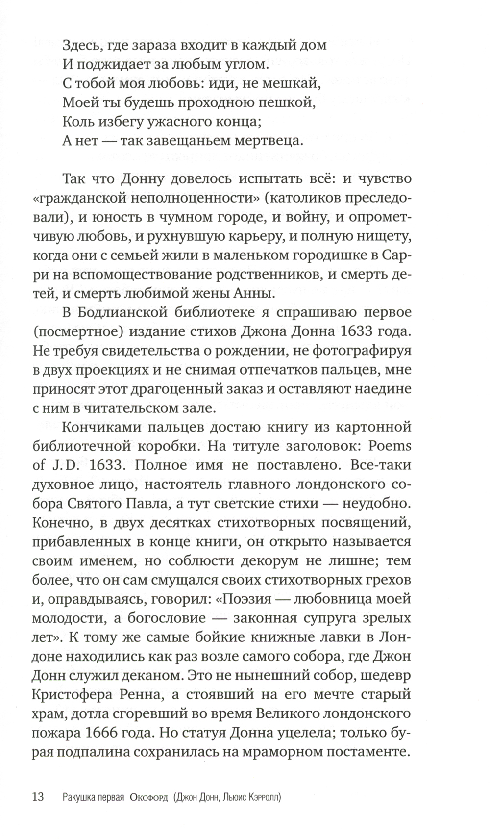 Книга известного переводчика и исследователя английской поэзии представляет собой воспоминания о его поездках по Англии, по местам жизни и творчества любимых поэтов, среди которых Джон Донн и Шекспир, Китс и Теннисон, Киплинг и Йейтс. Все увиденное и испытанное в этих литературных паломничествах настоятельно требовало запечатления. В результате получился своеобразный поэтический травелог. В нем соединяется серьезное с игрой, классика - с эфемерностью, далекое прошлое - с сегодняшним днем. Книга будет интересна всем любителям английской поэзии, всем будущим паломникам по святым местам истории и литературы.| Издательство | Центр книги Рудомино |