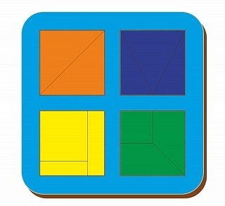 В наборе: планшет с выемками для вкладышей и 4 разрезанных квадрата.
