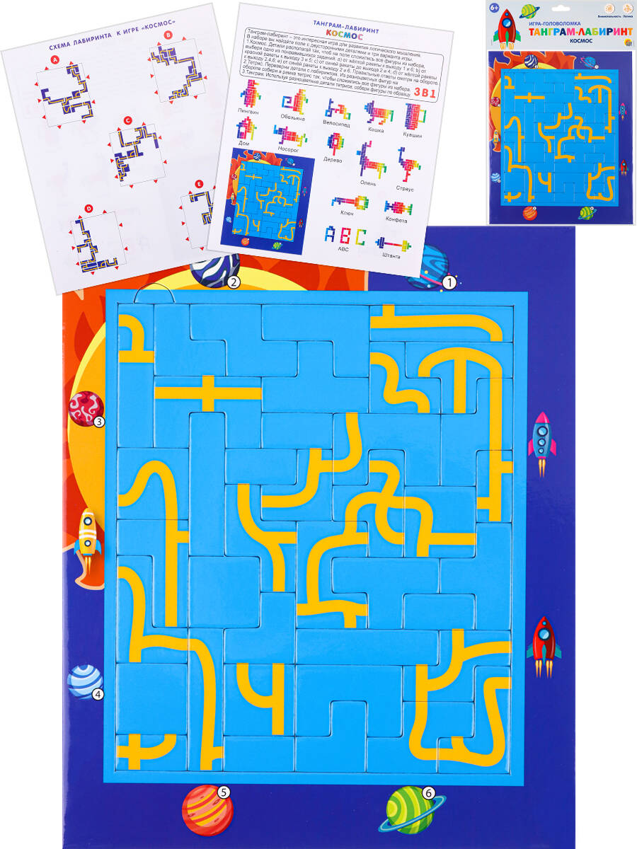 Рамка-вкладыш Танграм-лабиринт "Космос" - увлекательная головоломка, которая понравится и детям, и взрослым! Обучающая головоломка состоит из 1 игрового поля-рамки и вкладышей различной формы. Танграм способствует развитию у детей наглядно-образного мышления, воображения, внимания, понимания цвета, величины и формы, восприятия, комбинаторных способностей. Количество деталей: 39 штук.| Издательство | РЫЖИЙ КОТ ООО |