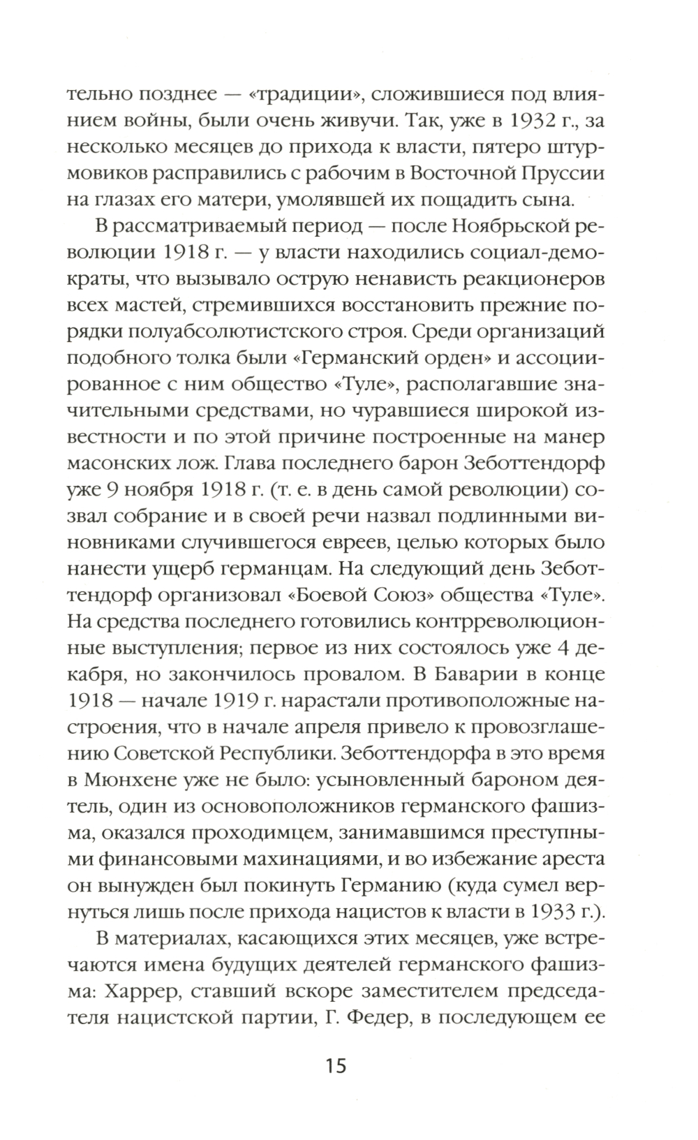 Немецкий национал-социализм своими корнями уходит в поражение Германской империи в Первой мировой войне. Поколение немецких фронтовиков считало, что Германию предали и всадили нож в спину. Из этой идеи родилась жажда реванша со временем превратившаяся в национал-социализм. Книга известного российского историка, доктора исторических наук Л.И. Гинцберга рассказывает о том, как в серо-зеленой массе ветеранов кайзеровской армии в 1919 г. появились ультранационалисты и как они пришли к расовой теории. Автор рассматривает важнейшие этапы на пути нацистов к власти - «Пивной путч» в Мюнхене в 1923 г., кровавую борьбу на немецких улицах нацистов с социалистами, формирование нацистской фракции в рейхстаге и наконец рывок к власти в 1933 г. В своей работе Лев Гинцберг подчеркивает «14-летняя история борьбы нацистской партии за власть изучена значительно меньше, чем период ее пребывания у власти» и вносит весомый вклад в изучение нацизма и его преступлений.