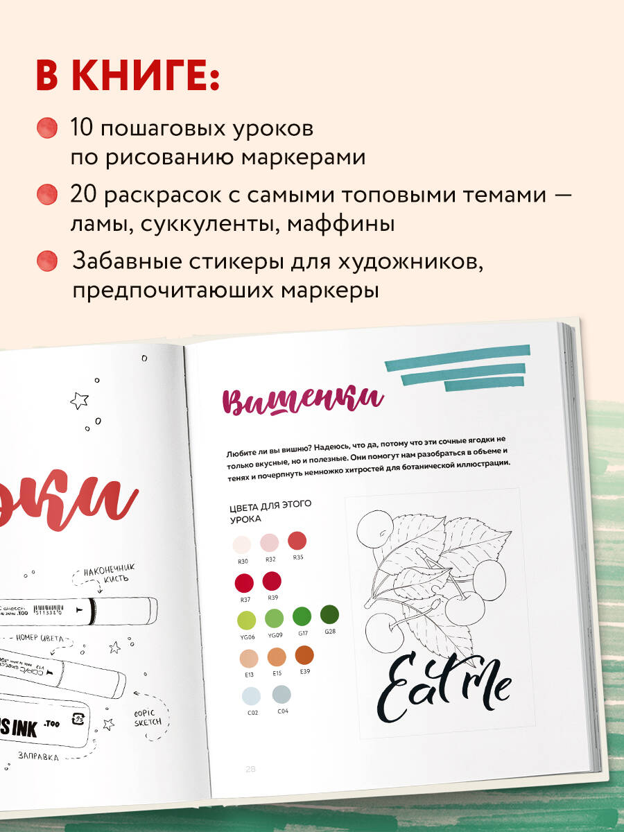 Маркеры - одно из самых популярных направлений в рисовании. Во всем мире художники-иллюстраторы активно используют их для создания своих красочных работ. Об авторе Лиза Краснова - художник-иллюстратор, ведущая мастер-классов по рисованию маркерами. Для кого эта книга Для тех, кто хочет научиться рисовать маркерами. Для тех, кто уже рисует маркерами, но хочет совершенствоваться. Фишки книги Пошаговые уроки по рисованию маркерами. Раскраски с самыми топовыми темами (ламы, суккуленты, путешествия и т.д.). Забавные стикеры для любителей маркеров.| Издательство | ООО "Издательство "Эксмо" |