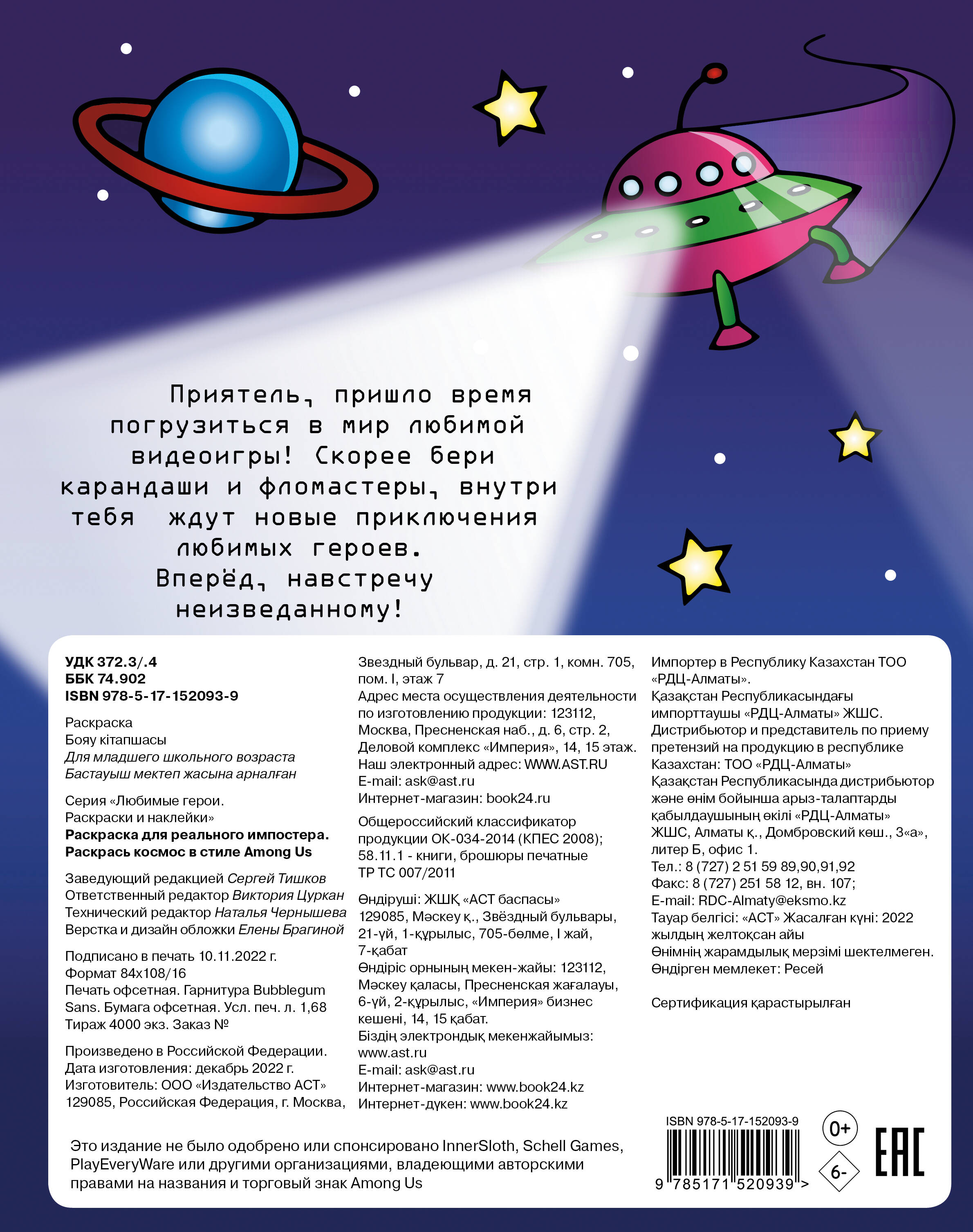 Аннотация: Раскраска для реального импостера. Раскрась космос в стиле Among Us