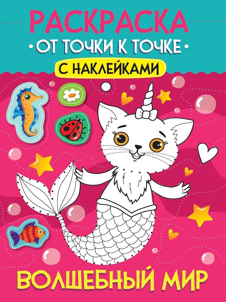 РАСКРАСКА. ОТ ТОЧКИ К ТОЧКЕ С НАКЛЕЙКАМИ. ВОЛШЕБНЫЙ МИР