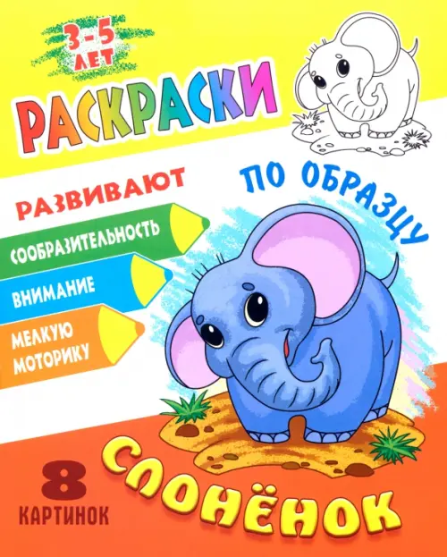 Аннотация: Раскраска по образцу. Слоненок