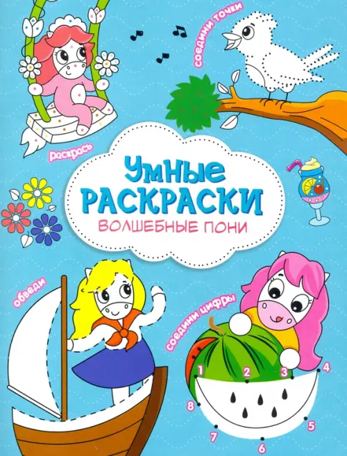 Серия «Умные раскраски» -интересное и полезное занятие для ребенка. Каждый разворот тренирует новый навык: «соедини по цифрам» поможет изучить счёт, «дорисуй по точкам и пунктирам» подготовит руку к письму, а раскрашивание по цветным подсказкам сформирует восприятие цвета у маленького художника! За таким творческим занятием время пролетит увлекательно и незаметно! "Волшебные пони"-это удивительные приключения Пони, где Вам предстоит дорисовывать и разукрашивать по подсказкам предметы волшебного мира.