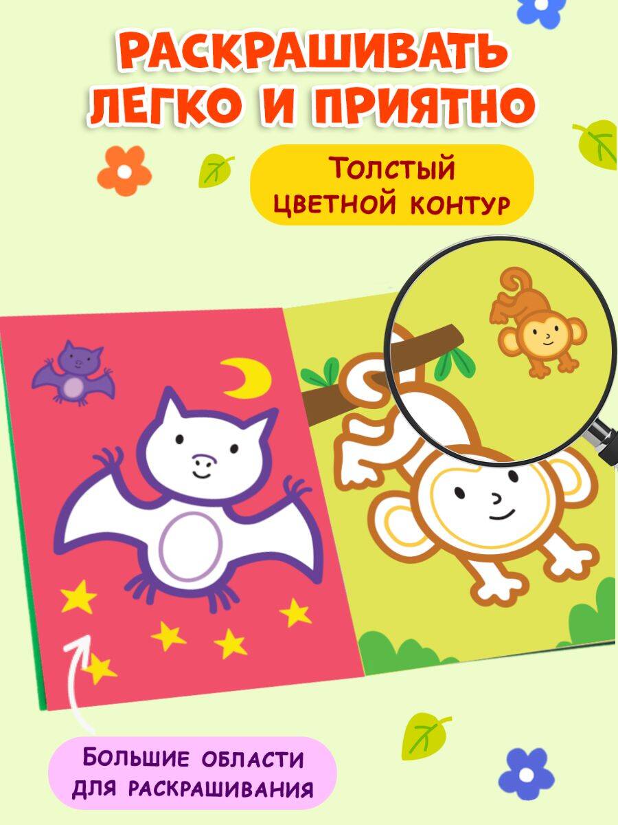 Раскраска с цветным контуром предназначена для малышей, которые только начинают рисовать и создавать свои первые рисунки. Внутри каждой раскраски - крупные и яркие иллюстрации, которые будут интересны как мальчикам, так и девочкам. Благодаря четким линиям, толстому цветному контуру и образцу для раскрашивания эта рисовалка прекрасно подойдет для развития мелкой моторики и поможет ребенку научиться различать цвета и подбирать правильные оттенки. Милые иллюстрации со зверятами также станут отличным поводом познакомить малыша с животным миром. Удобный небольшой формат раскраски позволяет брать ее с собой на прогулку или в поездку.| Издательство | ООО "Издательство "Эксмо" |