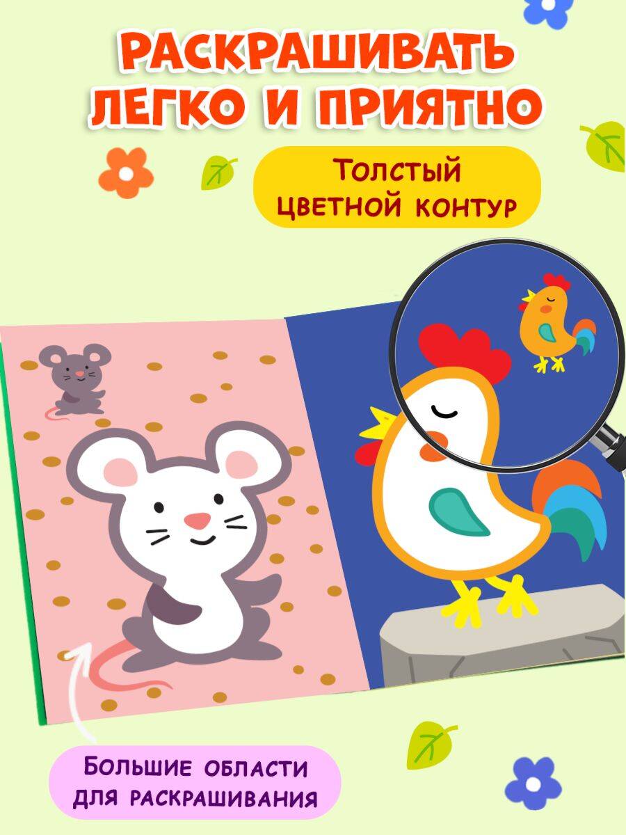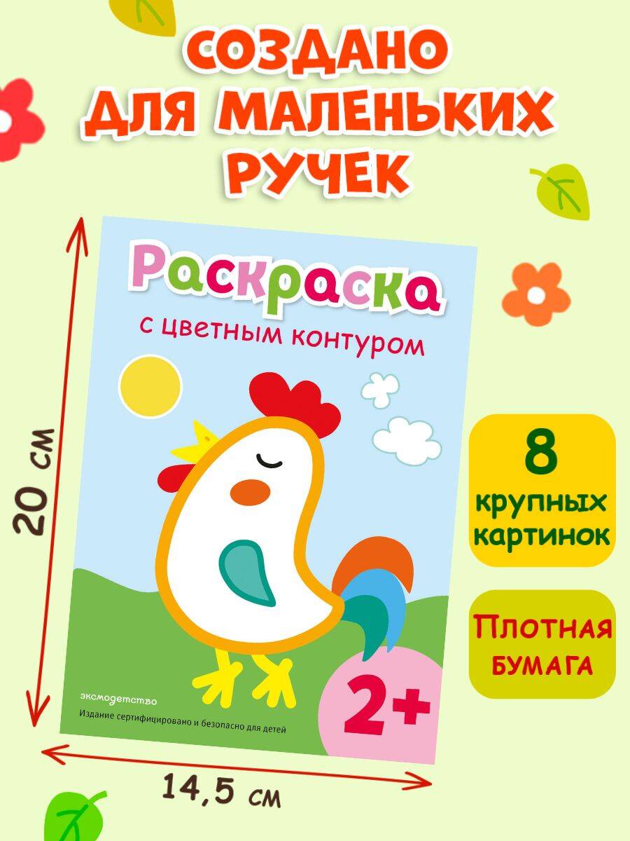 Раскраска с цветным контуром предназначена для малышей, которые только начинают рисовать и создавать свои первые рисунки. Внутри каждой раскраски - крупные и яркие иллюстрации, которые будут интересны как мальчикам, так и девочкам. Благодаря четким линиям, толстому цветному контуру и образцу для раскрашивания эта рисовалка прекрасно подойдет для развития мелкой моторики и поможет ребенку научиться различать цвета и подбирать правильные оттенки. Милые иллюстрации со зверятами также станут отличным поводом познакомить малыша с животным миром. Удобный небольшой формат раскраски позволяет брать ее с собой на прогулку или в поездку.| Издательство | ООО "Издательство "Эксмо" |
