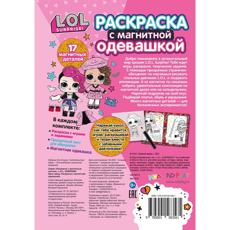 Аннотация: Раскраска с магнитным листом "L.O.L. Ярче звезд"