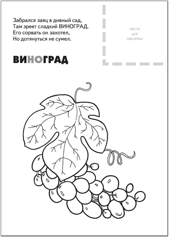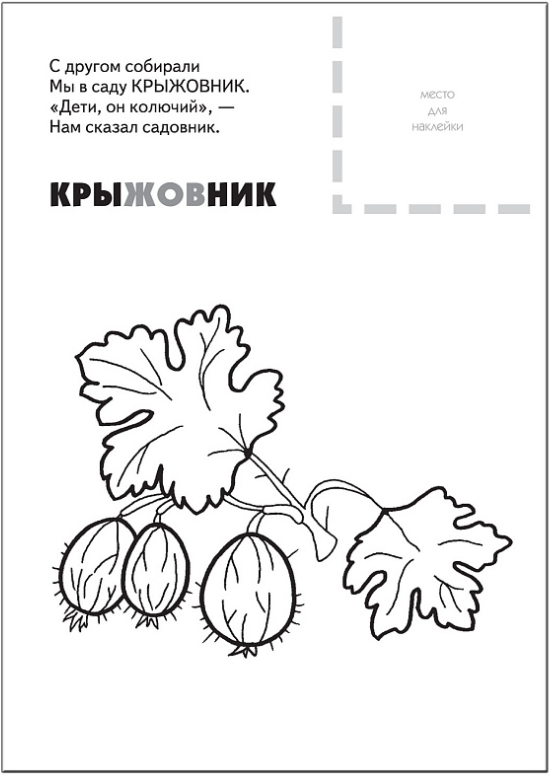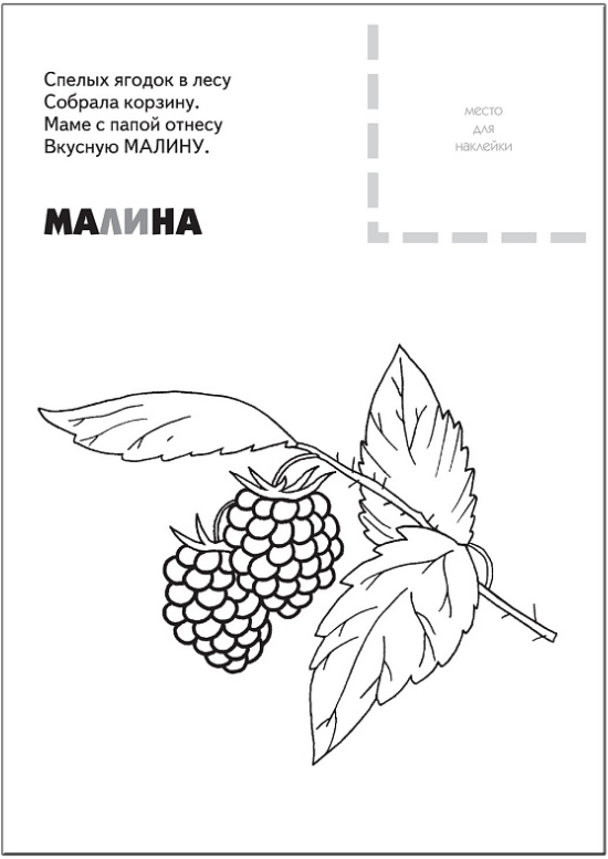 В книге собраны рисунки и стихи по теме «Ягоды». Ребенок знакомится с предметом, подбирает к каждому рисунку соответствующую наклейку, смотрит, как выглядит предмет, раскрашивает картинку. Для закрепления пройденного материала ребенок может самостоятельно выполнить предложенное в конце книги задание: ответить на вопрос и приклеить нужные наклейки.