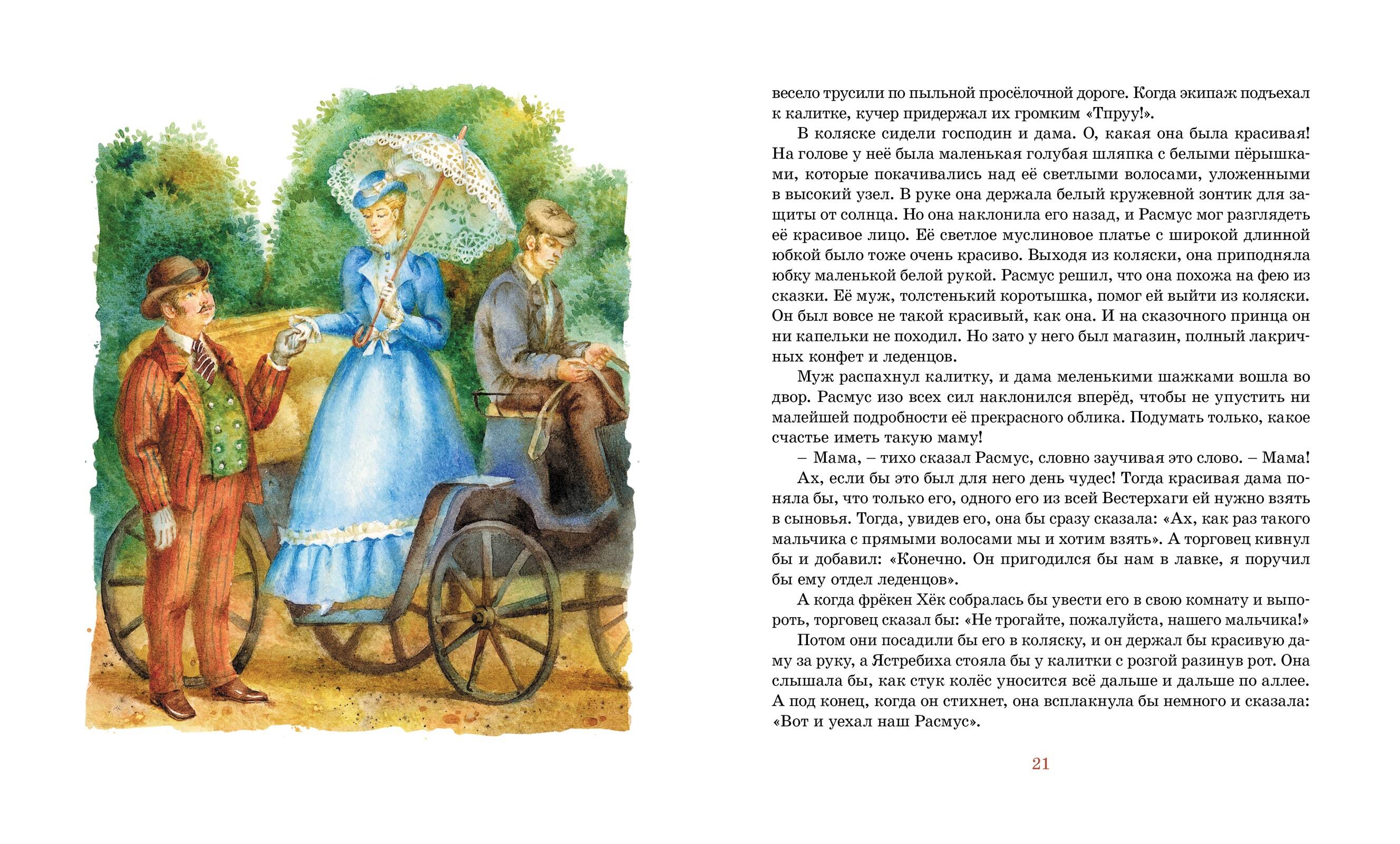 В повести "Расмус-бродяга" рассказывается о судьбоносных событиях в жизни девятилетнего мальчика, круглого сироты. Когда в приюте становится совсем невыносимо, он бежит куда глаза глядят. Во время своих скитаний Расмус знакомится с бродягой Оскаром. Впереди их ждут опасные приключения, которые, к счастью, закончатся благополучно. За эту книгу знаменитая Астрид Линдгрен получила почётную медаль Х.К. Андерсена.| Издательство | Азбука-Аттикус Издат.группа ООО |