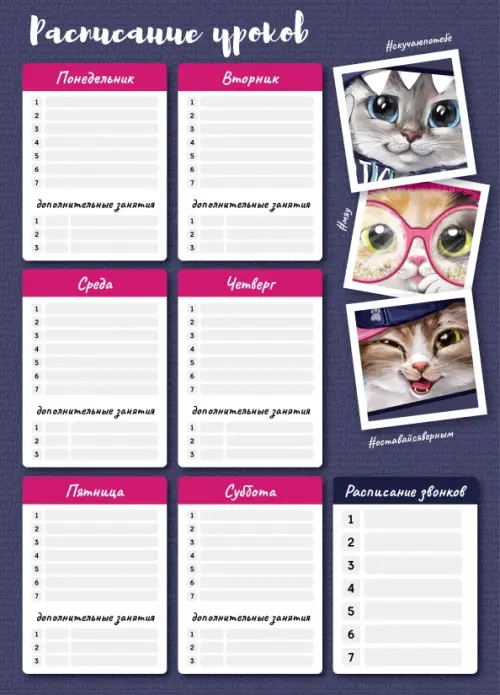 Расписание уроков Коты, А3