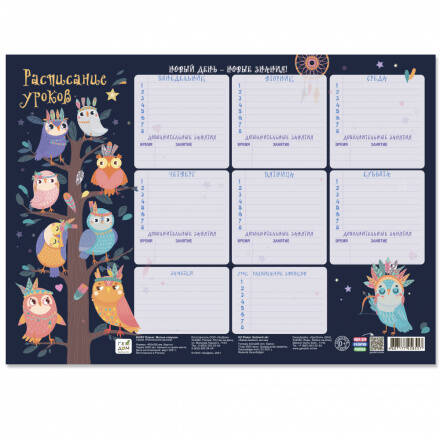 Аннотация: Расписание уроков. Милые совушки. 28,5х40 см. ГЕОДОМ