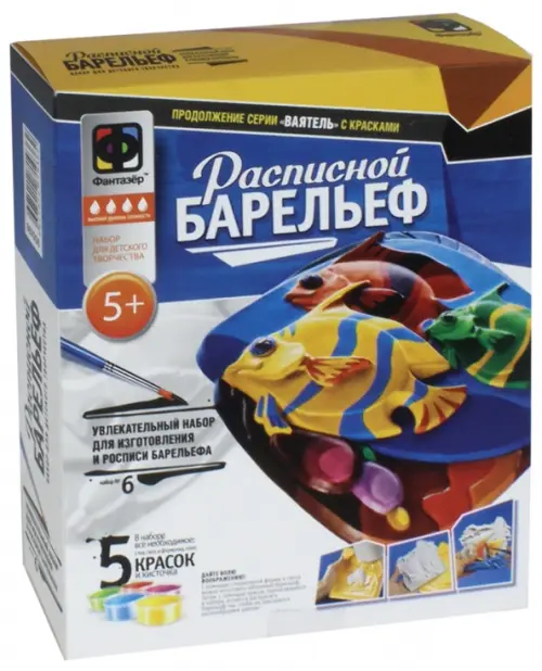 Набор для детского творчества "Расписной барельеф" с красками в комплекте, которыми потом можно будет полученный слепок раскрасить.