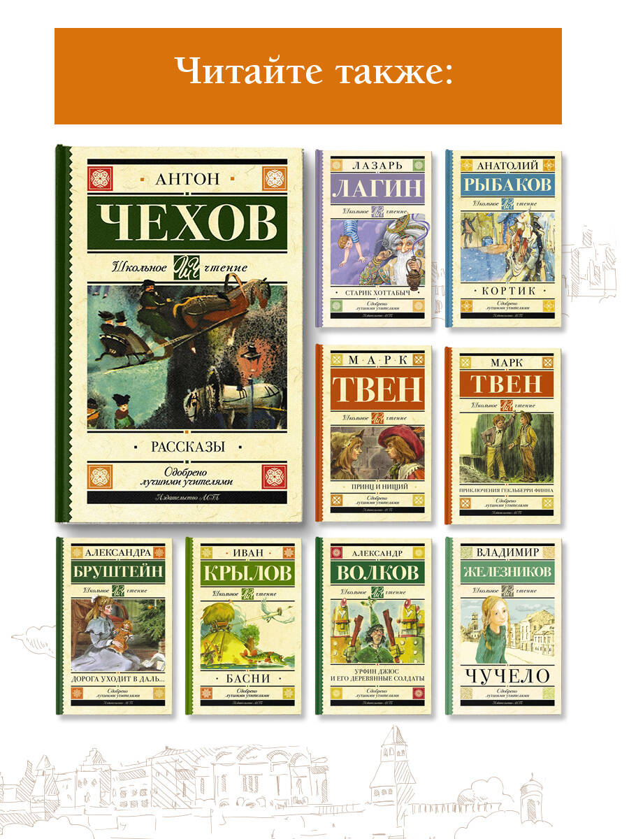В книгу вошли самые известные рассказы А.П. Чехова: «Каштанка», «Хамелеон», «Ванька», «Человек в футляре», «Палата № 6», «Дама с собачкой» и другие, изучение которых предусмотрено школьной программой. Рассказы Чехова коротки, но за видимой простотой в них скрыты глубина смысла и сложность художественного построения. Лаконичность, потрясающий юмор, ирония и богатое содержание делают их уникальными и не имеющими аналогов в мировой литературе. Максим Горький писал: «Никто не понимал так ясно и тонко, как Антон Чехов, трагизм мелочей жизни, никто до него не умел так беспощадно правдиво нарисовать людям позорную и тоскливую картину их жизни в тусклом хаосе мещанской обыденщины».| Издательство | ИЗДАТЕЛЬСТВО "АСТ" |