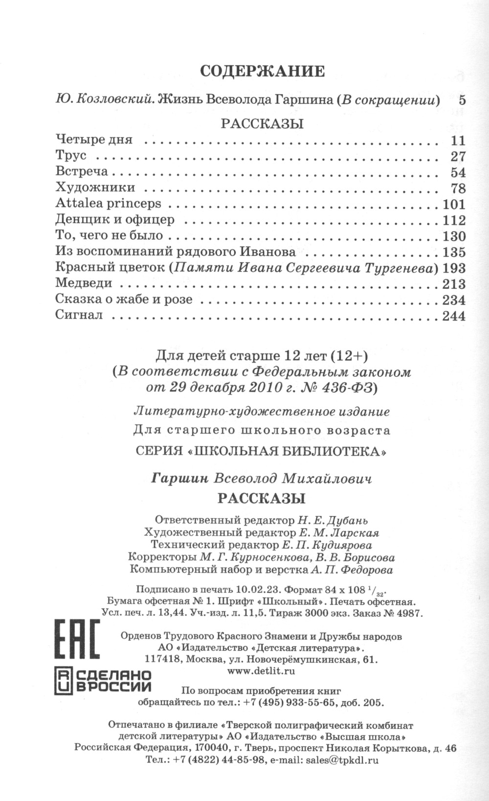 | Автор/составитель | Гаршин Всеволод Михайлович |