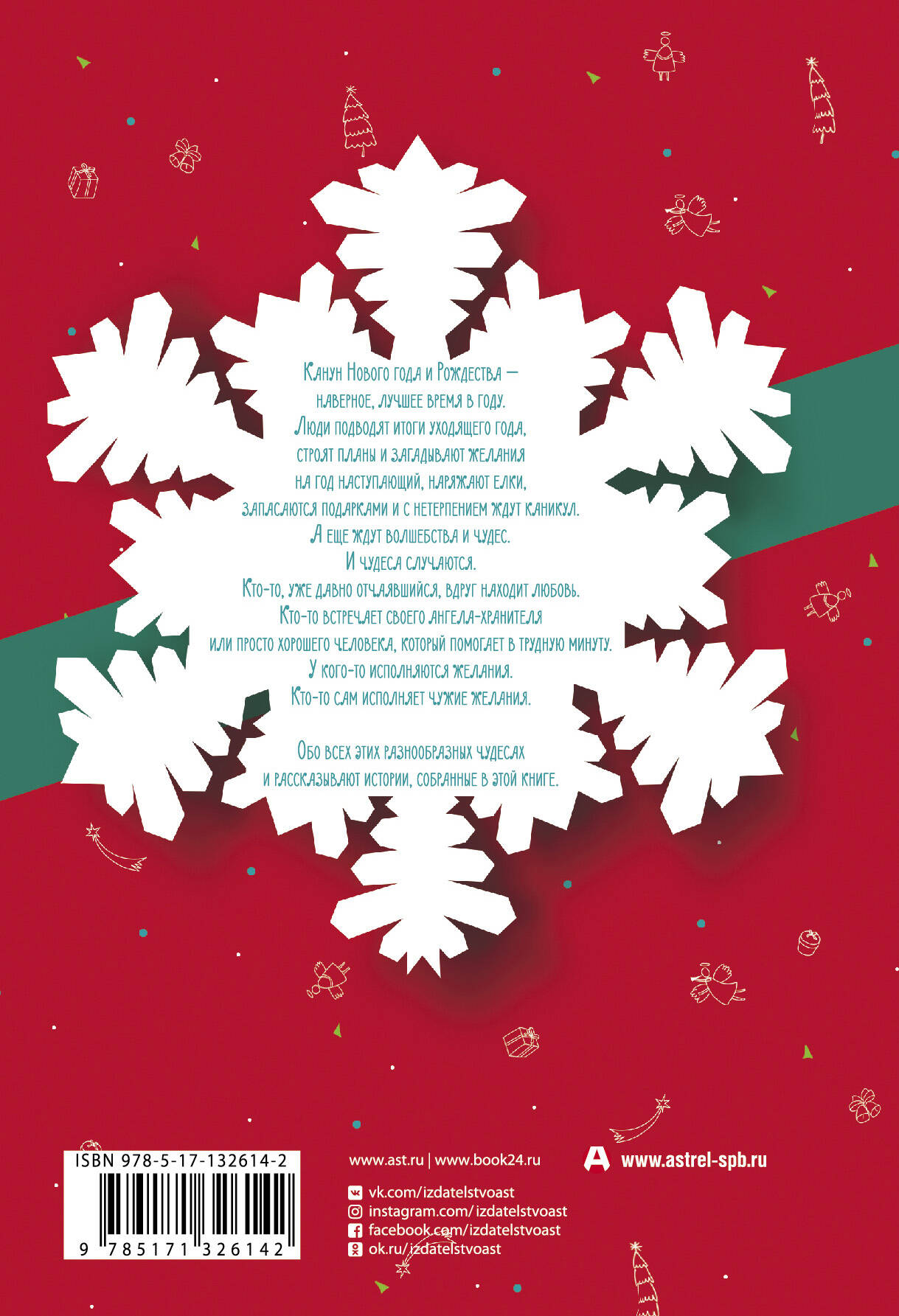 Канун Нового года и Рождества - наверное, лучшее время в году. Люди подводят итоги уходящего года, строят планы и загадывают желания на год наступающий, наряжают елки, запасаются подарками и с нетерпением ждут каникул. А еще ждут волшебства и чудес. И чудеса случаются. Кто-то, уже давно отчаявшийся, вдруг находит любовь. Кто-то встречает своего ангелахранителя или просто хорошего человека, который помогает в трудную минуту. У кого-то исполняются желания, кто-то сам исполняет чужие желания. Обо всех этих разнообразных чудесах и рассказывают истории, собранные в этой книге.| Издательство | Издательство "АСТ" |