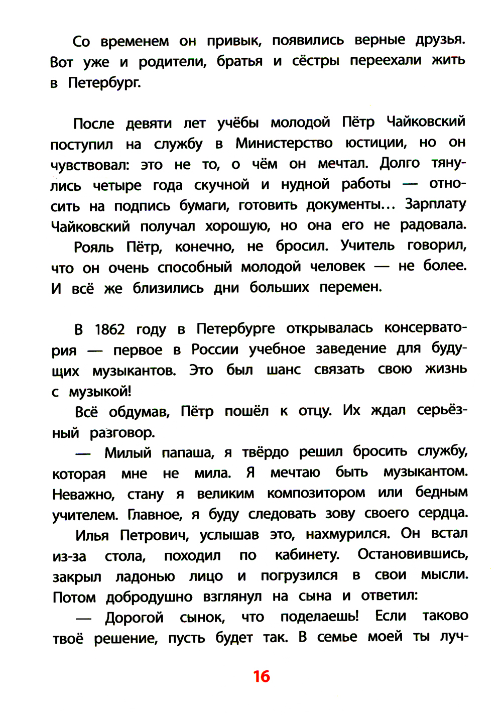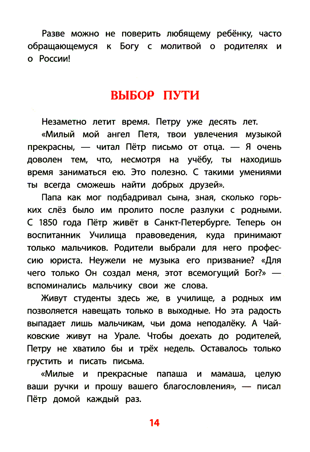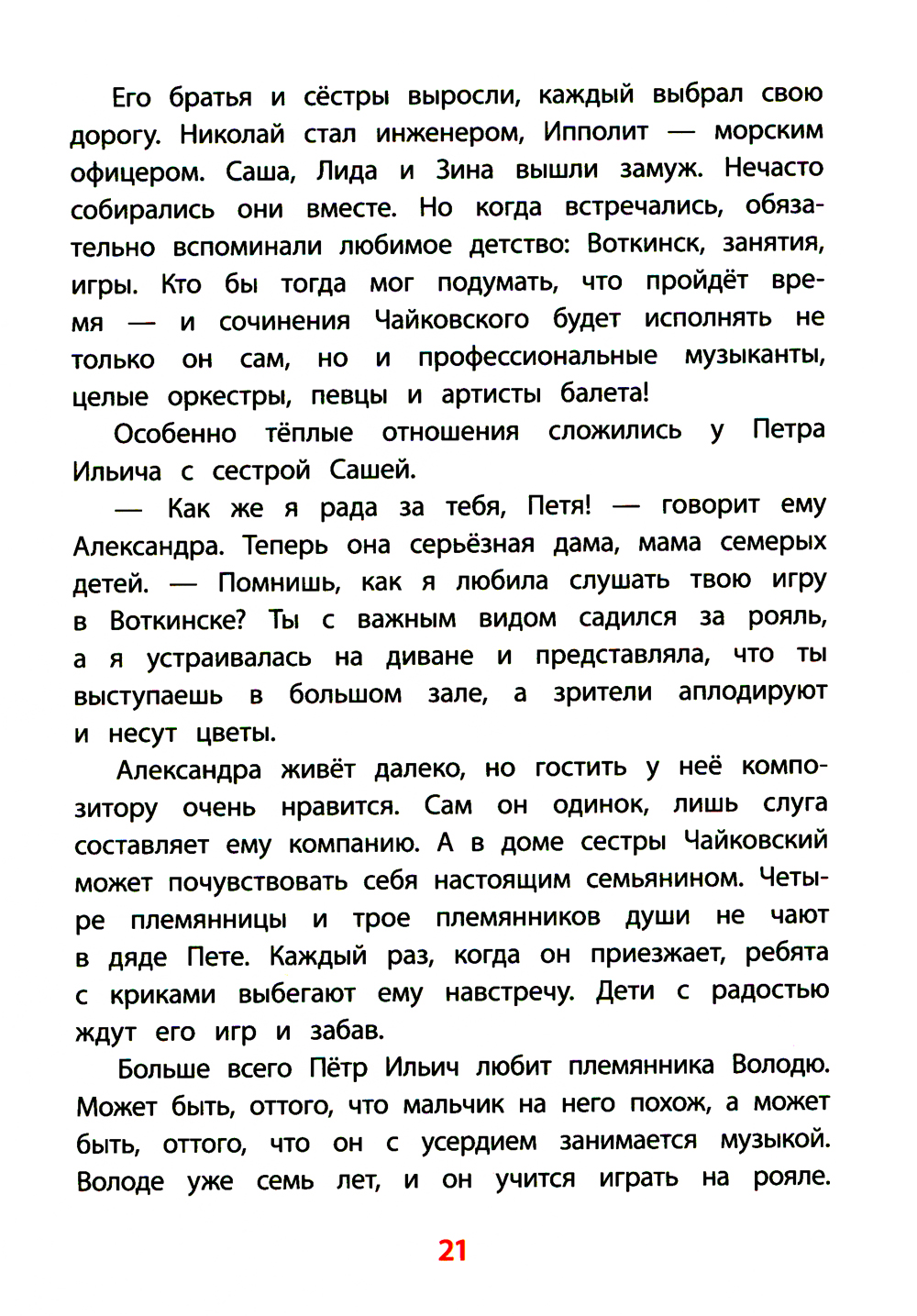 Сборник рассказов об одном из величайших композиторов мира - Петре Ильиче Чайковском. Вы узнаете о его детстве в небольшом уральском городке Воткинске, об учёбе в Санкт-Петербурге, о непростом пути к своей мечте - занятию музыкой. И, несомненно, о годах всемирного признания. По сей день музыка Чайковского остаётся символом русской культуры. Для младшего школьного возраста.| Издательство | Детская литература |