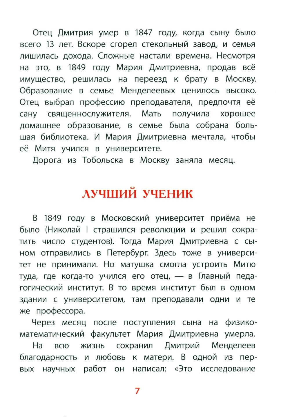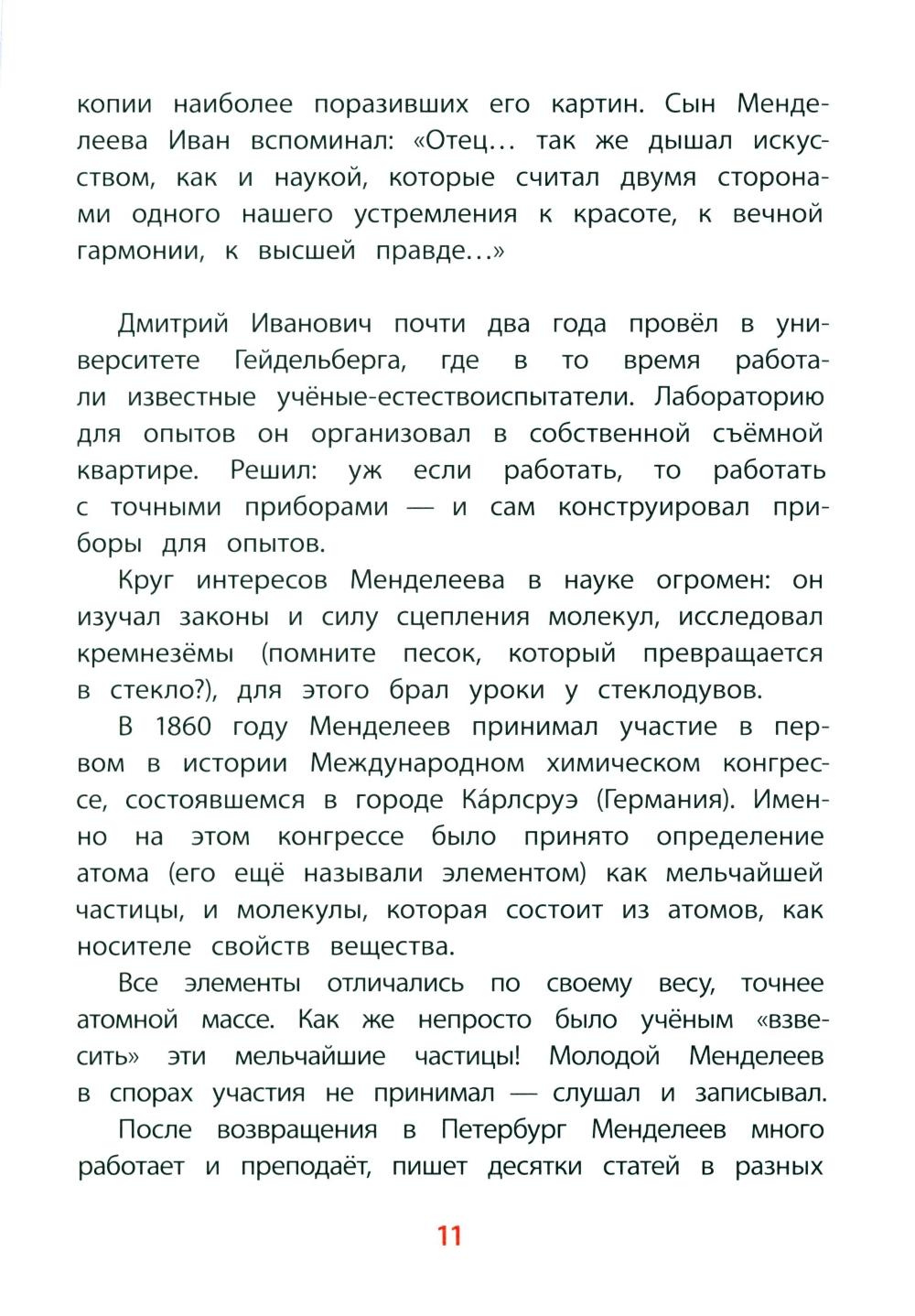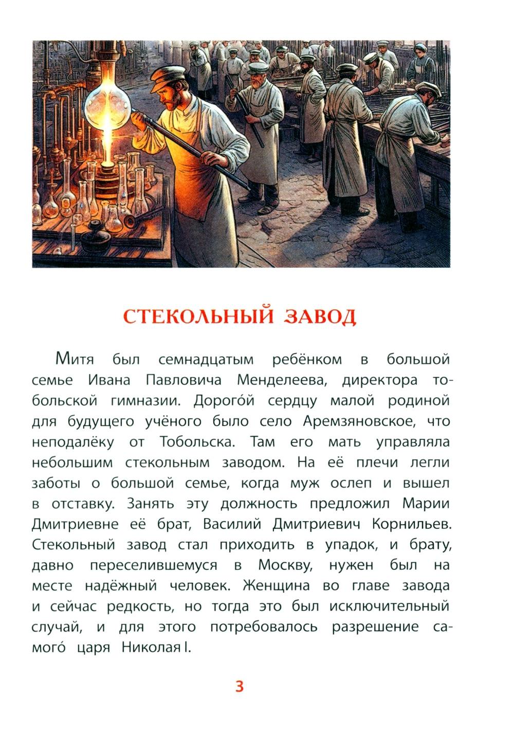 О чем мы вспоминаем прежде всего, когда произносим имя великого русского учёного Дмитрия Ивановича Менделеева (1834-1907)? Конечно, о его знаменитой таблице химических элементов, которую знают во всём мире. Он открыл закон повторяемости свойств элементов, из которых состоит наш мир, благодаря чему удалось привести накопленные учёными знания в понятную всем систему и предсказать новые открытия. Но интересы Дмитрия Ивановича распространялись намного шире, чем химия и физика. Он изобрёл состав бездымного пороха, писал статьи по искусству, исследовал залежи нефти и руды, разрабатывал проекты добычи земельных богатств. Под руководством Менделеева в нашей стране созданы эталоны веса, длины, температуры, давления, времени и электрических единиц. Это был поистине государственный ум, все свои знания, всю жизнь посвятивший родному Отечеству. Об этой уникальной личности, по масштабу сопоставимой с личностью другого выдающегося учёного - Михаила Васильевича Ломоносова, вы узнаете в этой книге. Книга знакомит юных читателей с личностью выдающегося русского учёного Дмитрия Ивановича Менделеева (1834-1907). Только ли своей знаменитой периодической таблицей химических элементов остался в памяти потомков этот великий человек? Какие важные открытия он ещё совершил? Об этом в доступной для ребят форме рассказывает известный писатель Юрий Нечипоренко. Для младшего школьного возраста.| Издательство | Детская литература |
