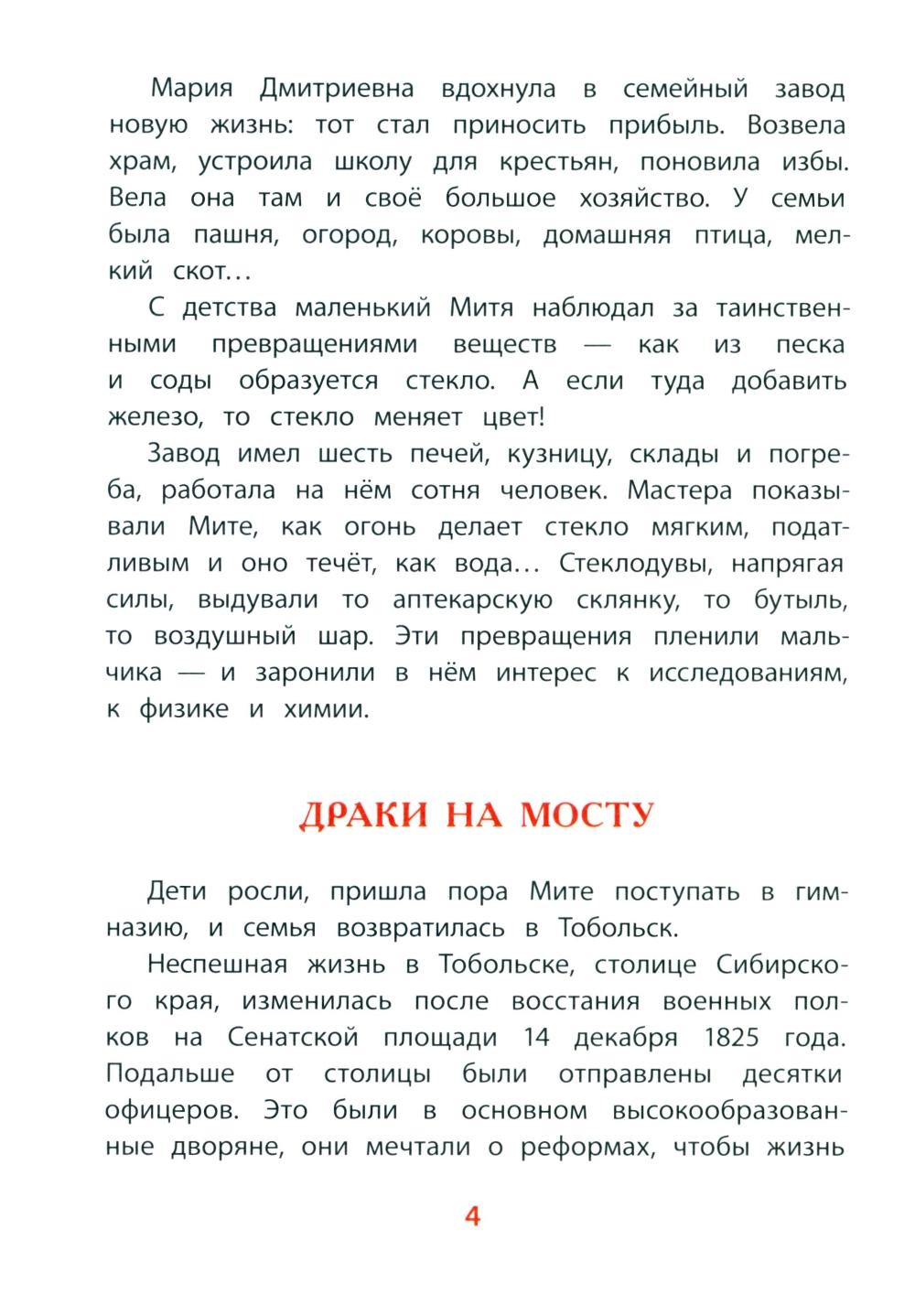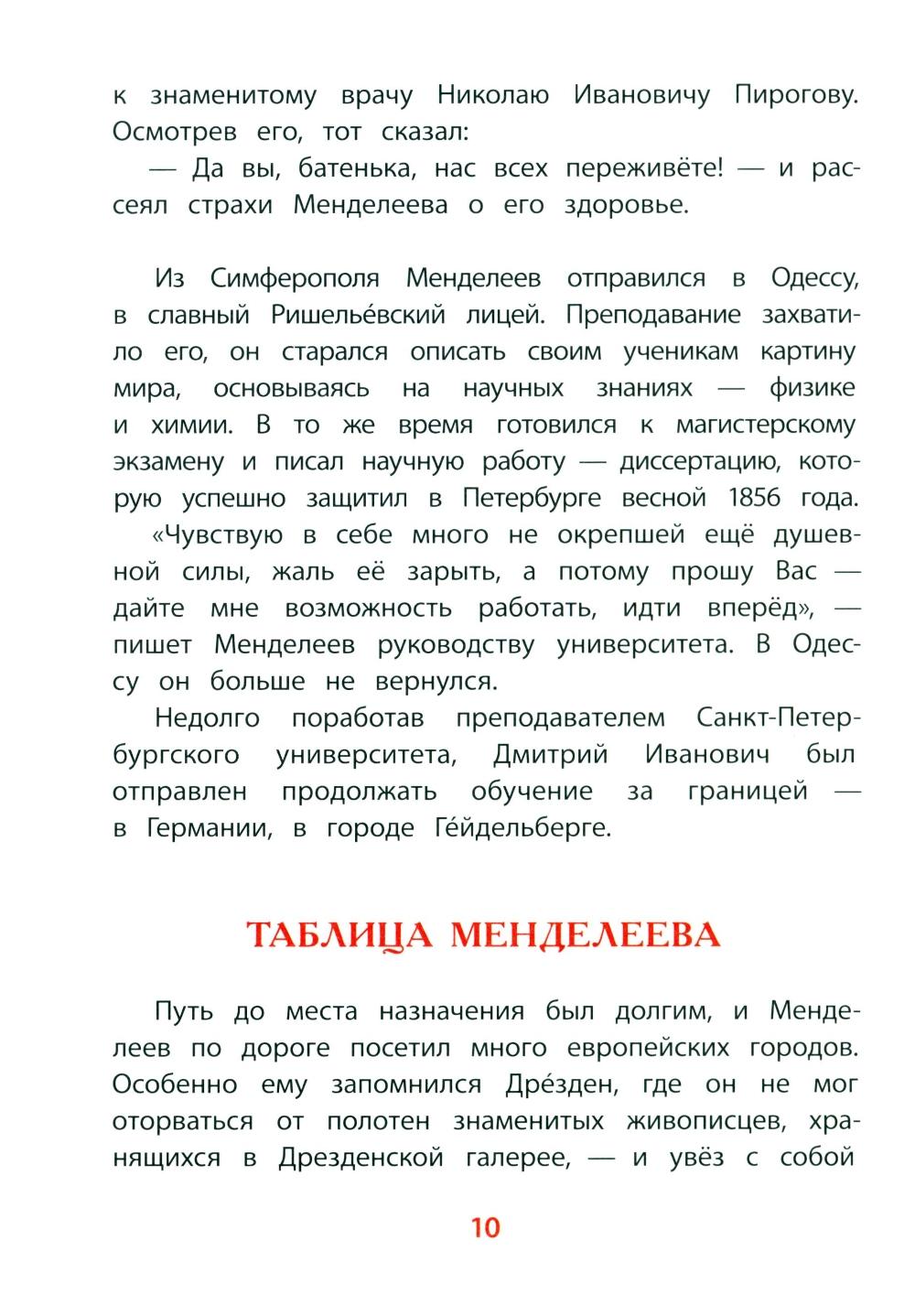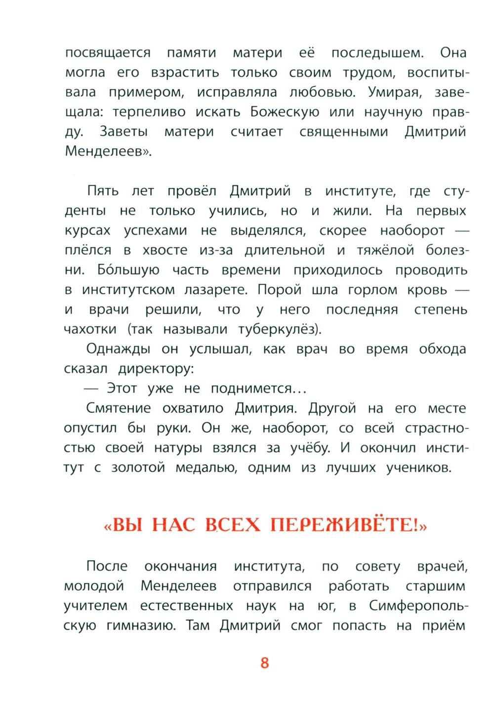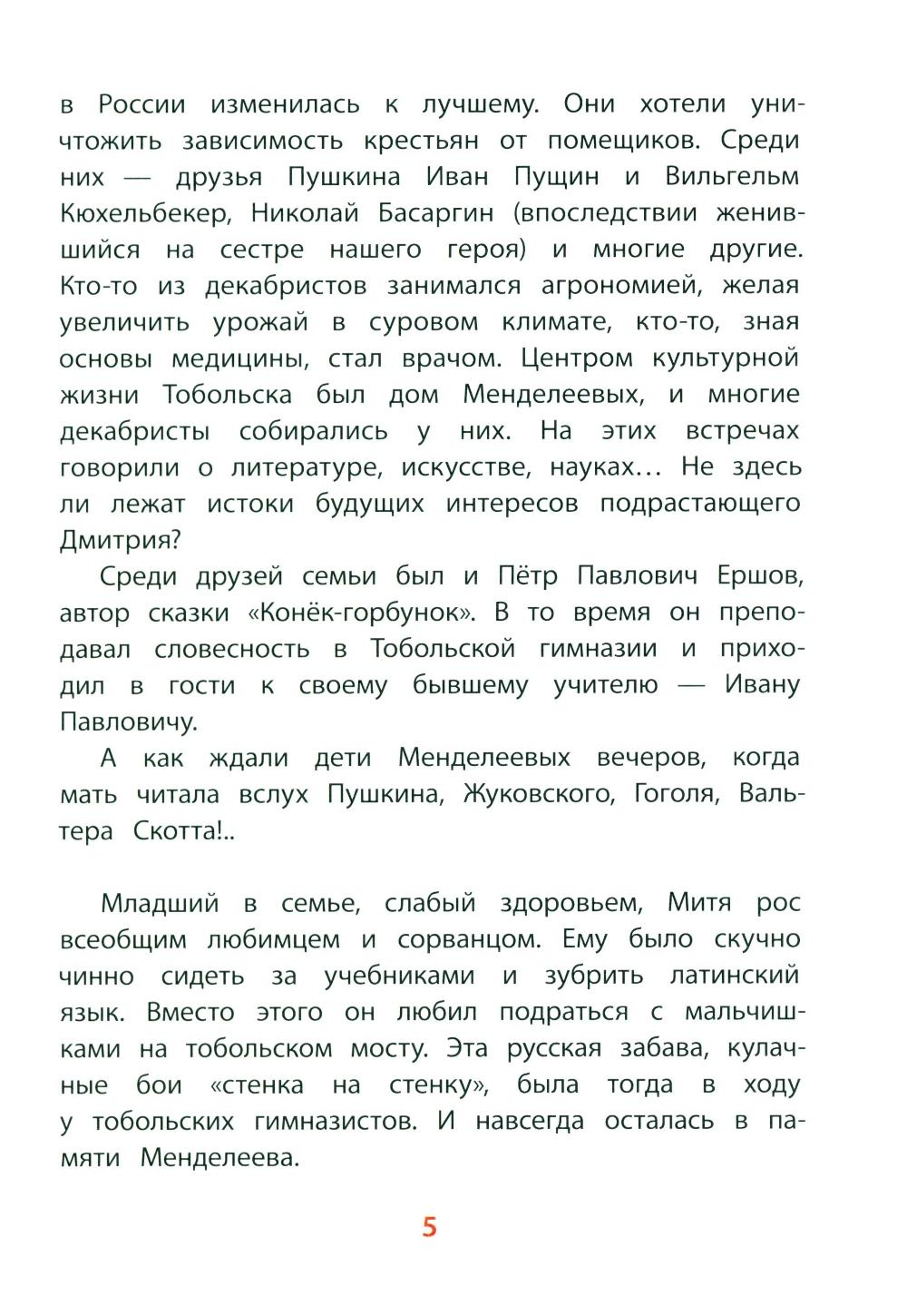 О чем мы вспоминаем прежде всего, когда произносим имя великого русского учёного Дмитрия Ивановича Менделеева (1834-1907)? Конечно, о его знаменитой таблице химических элементов, которую знают во всём мире. Он открыл закон повторяемости свойств элементов, из которых состоит наш мир, благодаря чему удалось привести накопленные учёными знания в понятную всем систему и предсказать новые открытия. Но интересы Дмитрия Ивановича распространялись намного шире, чем химия и физика. Он изобрёл состав бездымного пороха, писал статьи по искусству, исследовал залежи нефти и руды, разрабатывал проекты добычи земельных богатств. Под руководством Менделеева в нашей стране созданы эталоны веса, длины, температуры, давления, времени и электрических единиц. Это был поистине государственный ум, все свои знания, всю жизнь посвятивший родному Отечеству. Об этой уникальной личности, по масштабу сопоставимой с личностью другого выдающегося учёного - Михаила Васильевича Ломоносова, вы узнаете в этой книге. Книга знакомит юных читателей с личностью выдающегося русского учёного Дмитрия Ивановича Менделеева (1834-1907). Только ли своей знаменитой периодической таблицей химических элементов остался в памяти потомков этот великий человек? Какие важные открытия он ещё совершил? Об этом в доступной для ребят форме рассказывает известный писатель Юрий Нечипоренко. Для младшего школьного возраста.| Издательство | Детская литература |