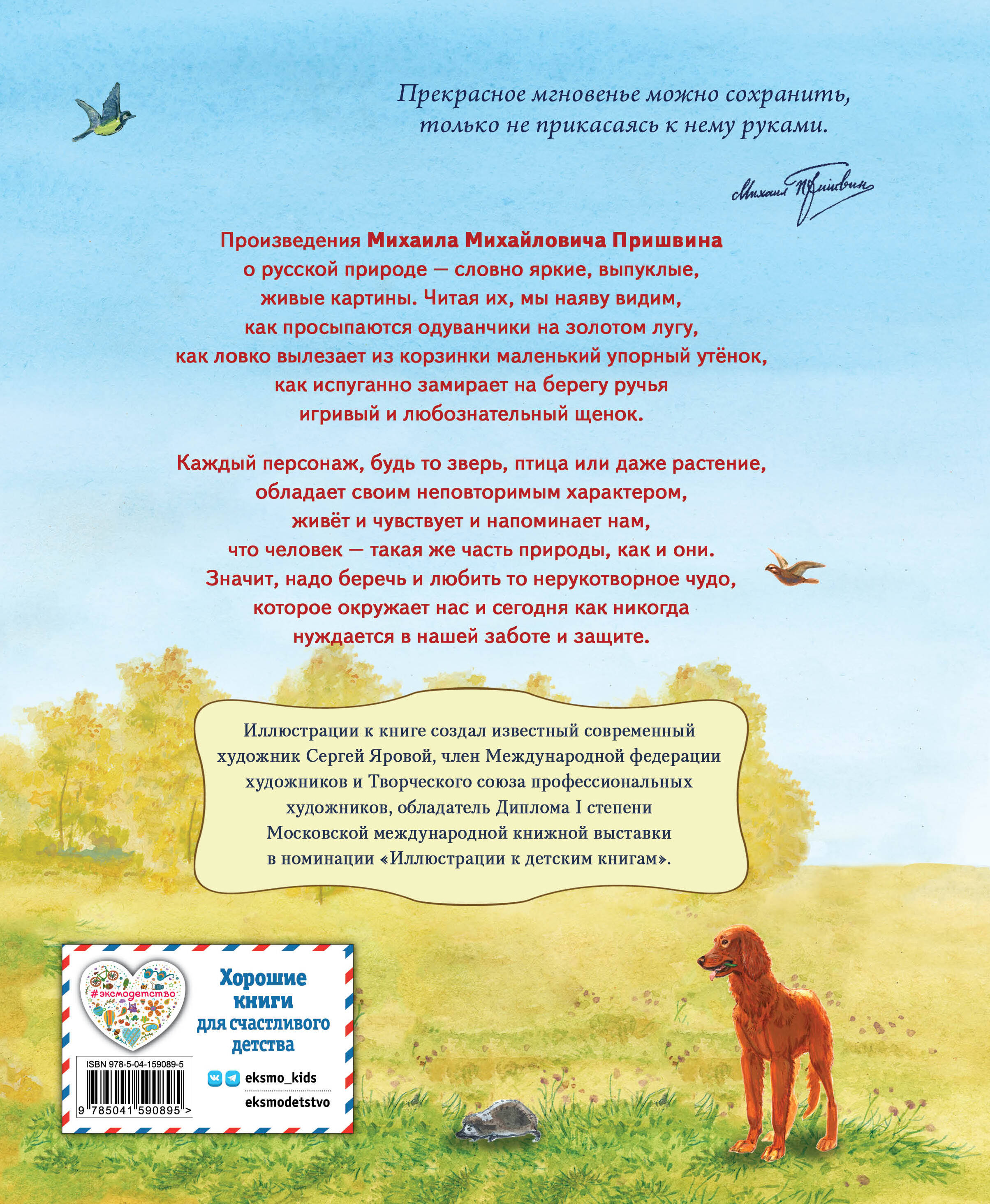 Произведения Михаила Михайловича Пришвина по праву занимают одно из главных мест среди множества книг о природе и о животных. Их читают и перечитывают люди нескольких поколений. И, конечно, именно по ним дети знакомятся с прекрасным и увлекательным миром русской природы. В рассказах Михаила Пришвина гармонично сочетаются точные наблюдения, мягкий юмор и безукоризненный, поэтичный и образный язык. Выразительные строчки создают в воображении лиричные картины лесов, полей и лугов. Каждый персонаж, будь то зверь или птица, обладает своим характером, заставляя нас сопереживать, волноваться и радоваться. И чем раньше юный читатель познакомится с чудесными книгами Михаила Пришвина, тем быстрее перед ним откроется неповторимая, уникальная красота родной земли. Иллюстрации к книге создал известный московский художник Сергей Яровой. В его работах оживают мельчайшие детали, продлевая наше наслаждение от встречи с прекрасной книгой. В сборник вошли 33 рассказа. Твёрдый переплёт с частичным лаком и выпуклыми элементами. Плотная белая бумага. Крупный чёткий шрифт.| Издательство | ООО "Издательство "Эксмо" |